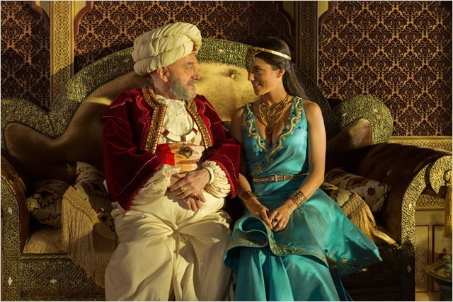 Pourtant, le jeunot n’est jamais aussi médiocre que les œuvres pour lesquelles il accepte de donner de sa personne. « Les Profs 1 et 2 » ou même « Fiston » sont effectivement des produits de piètre qualité mais peut-on réellement en imputer toute la responsabilité à son interprète principal ? Sans doute non car la jeune star s’en sort toujours bien, et même souvent mieux que d’autres vedettes à qui il donne la réplique. Du coup, cette adaptation artificielle et maladroite d’un « Conte Des Mille Et Une Nuit » ne déroge pas à la règle. Le réalisateur Arthur Benzaquen, parfait inconnu du grand écran, tente apparemment de réutiliser la fameuse recette qui fit le succès de « Astérix : Mission Cléopâtre ».