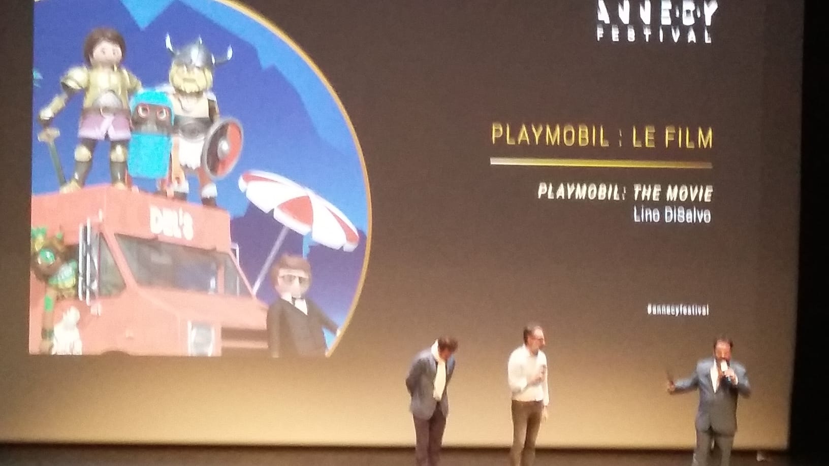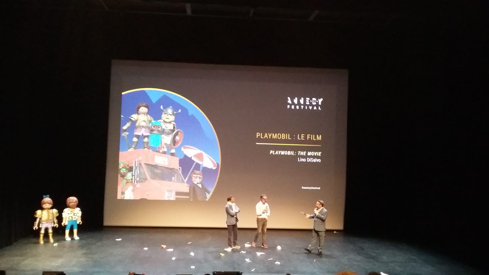 Quoiqu’il en soit dans la petite salle de Bonlieu, Marcel Jean arriva sur scène accompagné du réalisateur de « Playmobil, le Film » Lino DiSalvo (« Raiponce ») et d’un des producteurs de la même animation, Aton Soumache (« Le Petit Prince« ). Mais avant le long-métrage animé, une première mondiale fut aussi diffusée et pas des moindres, car il s’agit de la résurrection des… « Lllloooonnnnneeeeyyyyyy Ttttooooonnnnnssssss » !!!! Et pour se faire, rien de mieux que de reprendre la mascotte des « Toons », soit « Bugs Bunny ». « Mummy Dummy » est le titre de sa nouvelle mésaventure. Certain-e-s s’écrieront au scandale, encore une version numérisée ratée. Sans trop en dévoiler, c’est tout l’inverse. Drôle, et surtout, respectueux des « Toons » de l’époque, les décors, animations et voix, raviront les anciennes et nouvelles générations.