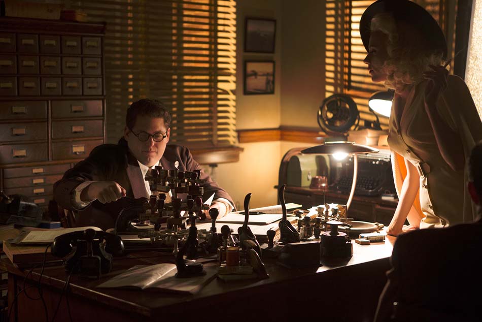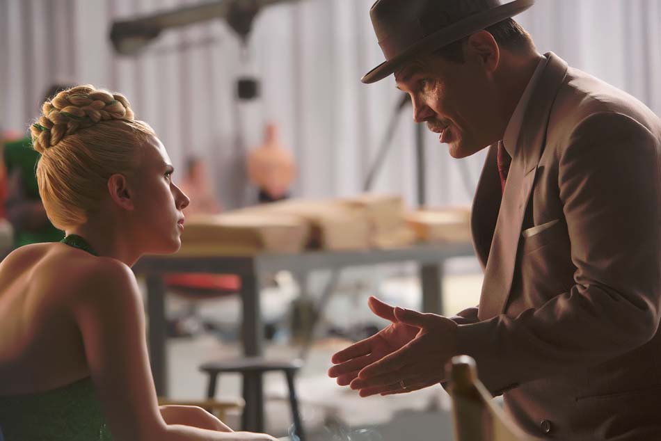 Tout d’abord, grâce à une connaissance érudite du monde du cinéma, les frères Coen brossent un portrait au vitriol d’une époque, ou devrait-on dire de la fin d’une époque, l’Age d’or d’Hollywood se situant à la fin des années 50. Réunissant des personnages hauts en couleurs comme la starlette au sourire Colgate à la cuisse facile qui jure comme une charretière dès que le mot « Coupez » est prononcé, LA star masculine par excellence, certaine de son statut de mâle Alpha, mais tout de même un peu nigaud, le cascadeur pas très futé devenu star malgré lui, ne sachant jouer exclusivement que le cow-boy pas très loquace, des journalistes jumelles un rien fouineuses ou encore le danseur beau gosse avec un penchant communiste et « last but not least » pour gérer tout ce petit monde, l’homme à tout faire du studio, toujours là quand il faut au bon moment au bon endroit ! Tous ces portraits sont bien entendu calqués sur des personnages ayant existé ou fortement inspirés de la réalité. Le personnage principal, Eddie Mannix (impeccable Josh Brolin), a réellement officié en tant que « fixer » (réparateur, quoi) pour les studios MGM durant les années 20, un homme implacable qui s’occupait que les problèmes survenant au sein du studio ne soient pas rendus publics. « Ave César ! » retranscrit fidèlement cette ambiance hollywoodienne où les apparences ne sont pas forcement ce qu’elles semblent être !