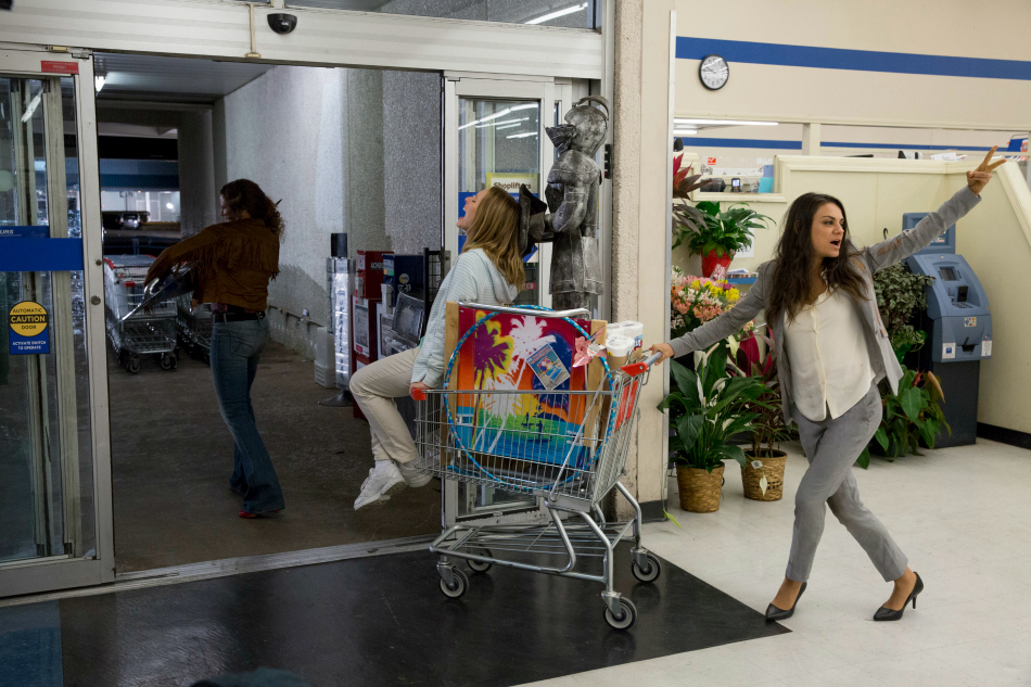 Le pitch est donc bien simple, et propose une réflexion sur le statut de la mère dans la famille, sur son importance dans les petites tâches du quotidien qui ne se font pas toutes seules et sur les conséquences de leur libération domestique, de leurs retrouvailles avec une vie sans enfants, sans obligations parentales. On adore la scène dans le supermarché où Amy et ses copines (Kathryn Hahn, Kristen Bell) s’envoient des litres de vodka et des paquets de céréales colorées à pleine bouche – voir Mila Kunis engloutir des « Froot Loops » au ralenti est très clairement une des raisons pour laquelle on est heureux d’avoir vu le film. Révolution, démesure, provocation à outrance, tout cela culmine dans la scène de la fête dans la maison familiale, une sorte de Projet X (2012) version mamans : rues saturées de monospaces avec sièges pour enfants, verres de Chardonnay à foison, dégustation de crème chantilly par bombes entières… Une sorte d’autodérision se détache donc du film qui est conscient de présenter une insurrection un peu inhabituelle et très concrètement tabou, disons-le. Le jeu avec la surenchère s’inscrit dans une autre mesure et crée des situations comiques bienvenues : la réunion d’allaitement quasi-sectaire, les (sous-)vêtements d’Amy on ne peut moins sexy, la fameuse classe de zumba où on est la seule avec un gros training gris à ne pas être en rythme.