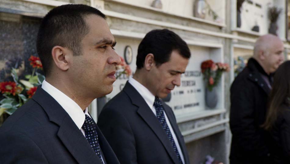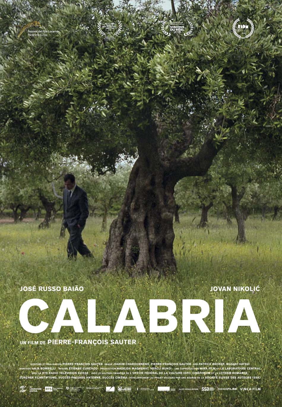 Calabria, titre du nouveau film de Pierre-François Sauter, désigne autant un espace géographique réel (une région du Sud de l’Italie) qu’imaginaire : un ‘heimat’ où seraient enfouis les rêves d’enfant et qui subsisterait, jusqu’au trépas, à l’état de trace ineffaçable dans la mémoire d’un travailleur immigré italien, mort en Suisse, dont les archives inaugurales content l’histoire ordinaire : celle de l’exil économique intra-européen. La dépouille de cet homme, dont nous venons d’imaginer la vie, José, d’origine portugaise et Jovan, un Rrom serbe, deux employés des pompes funèbres de Lausanne, sont chargés de la convoyer jusqu’en Calabre, là où son existence a commencé. Pour les deux compères, débute un road-movie drôlatique aux accents faulkneriens (Tandis que j’agonise), qui recourt à la technique du split screen pour transformer le corbillard en scène de théâtre. Et dans ce décor ambulant, les deux immigrés se découvrent petit à petit, plaisantent, éprouvent leurs différences, mais surtout ce qui les rapproche intimement du cadavre avec lequel ils voyagent : la commune condition de s’être, un jour, déracinés.