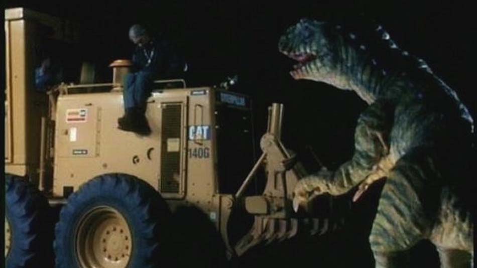 Le premier jet du scénario proposé alors par Brosnan a été au final massivement modifié par le scénariste du film, Adam Simon, afin d’être plus en adéquation avec le petit budget alloué à l’équipe du film. Comprenez par-là que le matériel de base a été fortement charcuté et simplifié, ce qui ne signifie pas pour autant que le résultat final soit décevant ! Ce Carnosaur, est même plutôt surprenant, à commencer par le ton incroyablement sérieux qui lui est donné. Au vu du contenu, il y avait pourtant de quoi s’attendre à bien plus de second degré ! Il faut dire que le scénario comporte des éléments particulièrement foufous, puisqu’on y trouve par exemple des femmes qui pondent des œufs de dinosaure et un combat entre un tractopelle et un T-Rex. Cependant, le summum reste l’interprétation de Diane Ladd, la mère de l’actrice Laura Dern, qui joue ici très consciencieusement le rôle d’une scientifique folle.