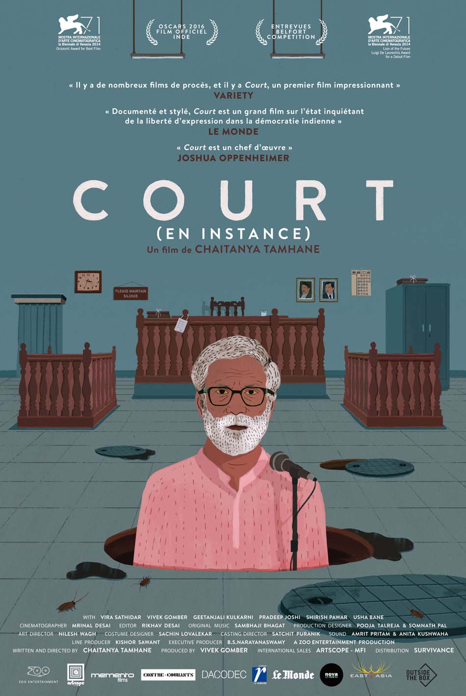 La ville de Bombay a son importance, même si le film se déroule surtout dans la salle de tribunal. Selon le réalisateur, « Bombay est la ville des ouvriers, des syndicalistes, des communistes et des socialistes, des migrants, des académiciens, des journalistes et des professeurs. En ce sens, « Court » est également un point de vue documenté de Bombay, en particulier de la culture Maharastria. »
