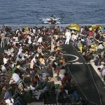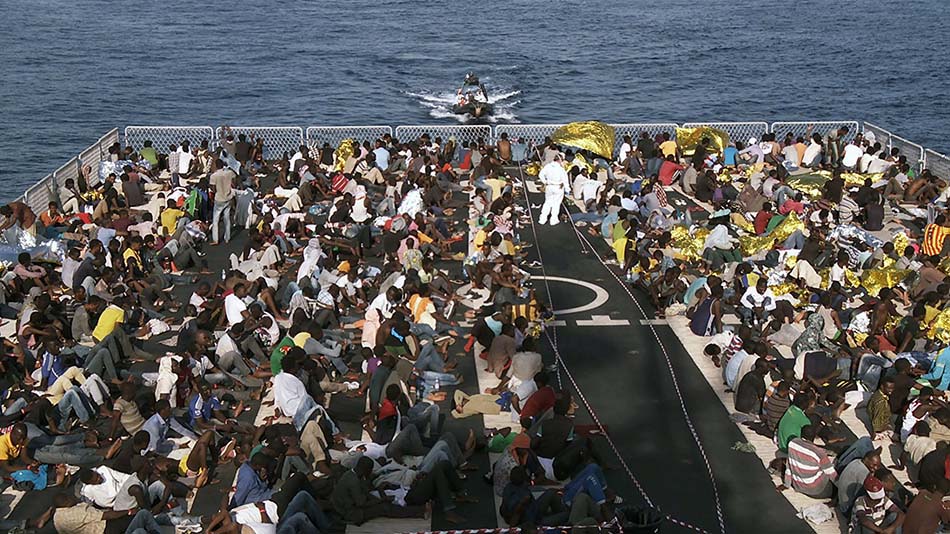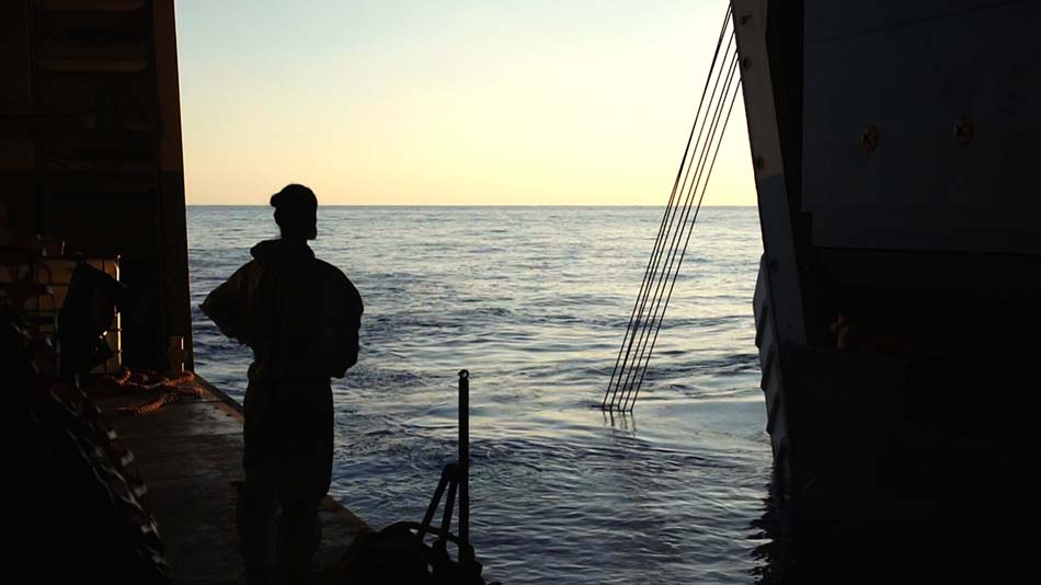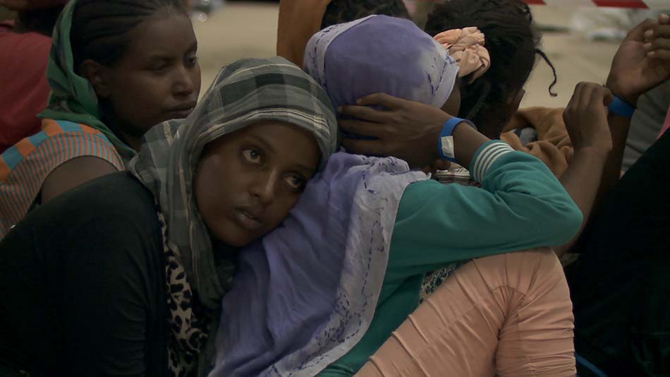Arrivé en Calabre, il embarque caméra au poing sur l’un des navires de la marine italienne. Après nous avoir présenté l’équipage et décrit leurs affectations, nous partons en sa compagnie sur la mer Méditerranée à la recherche de ces misérables embarcations qui ont causé tant de morts. Choquantes et floues, les images deviennent plus soft, une fois les migrants recueillis sur terre. Le documentaire change alors de ton, on cherche des informations et la critique se veut moins virulente qu’avant.