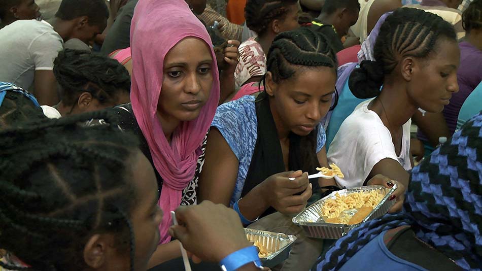 Vêtus de combinaisons protectrices, les sauveteurs volontaires s’empressent de fournir les premiers soins médicaux, de nourrir les rescapés et de recueillir des informations sur leur provenance. Une fois ces formalités effectuées, les migrants sont parqués dans des centres d’accueil pas si accueillants que ça. Ils doivent attendre que leur cas soit minutieusement étudié par l’Union européenne pour pouvoir continuer leur route…