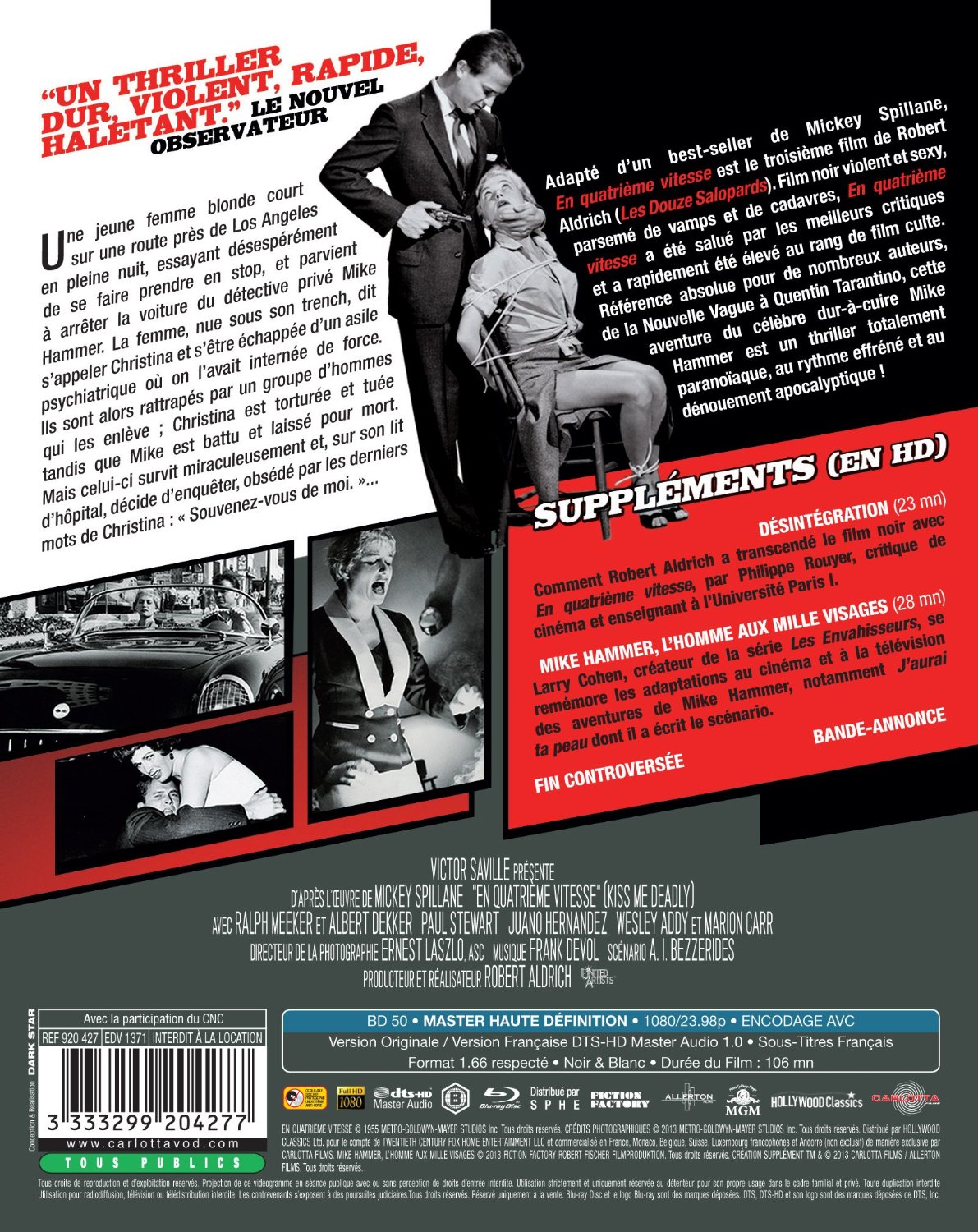 Film noir par excellence, « En Quatrième Vitesse« (« Kiss Me Deadly ») est disponible chez Carlotta Films en DVD et Blu-Ray. L’occasion est donc parfaite pour redécouvrir cette œuvre charnière de l’histoire du cinéma américain et de la carrière de Robert Aldrich (« Les Douze Salopards », « Qu’est-il arrivé à Baby Jane ? »), qui abordait la thématique du nucléaire comme jamais auparavant.