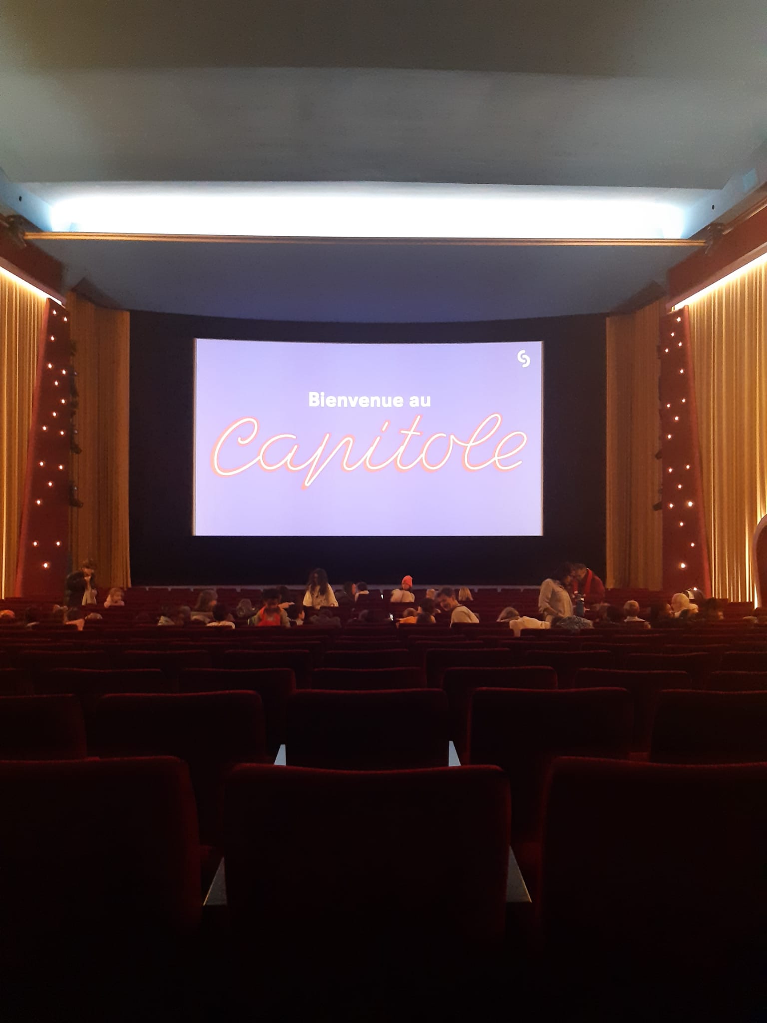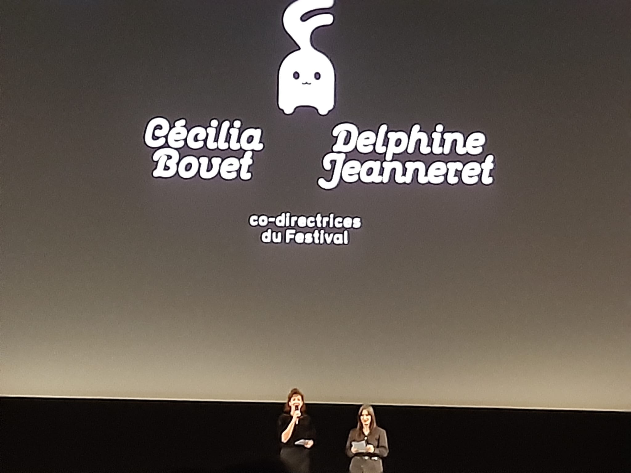 Une fois ce moment terminé, les bambins, parents et professeur-e-s enfin confortablement installé-e-s, les lumières de la salle purent s’éteindre et l’animation fut lancée sur la toile du splendide grand écran.