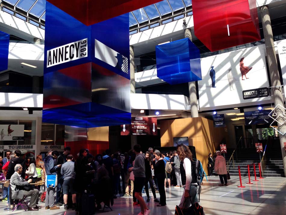 En effet la 40ème édition du Festival international du film d’animation d’Annecy attire les amateurs, spécialistes, réalisateurs, acheteurs du monde entier… et beaucoup de jeunes. Qui dit jeune dit ambiance décontractée et joviale durant les projections. Avant les projections, des avions en papier survolent le public, le but étant de les faire voler le plus proche de la scène. Chaque avion qui touche au but est applaudi chaleureusement. Bref, l’ambiance est bon enfant.