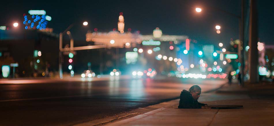J’ai fait des recherches pendant sept semaines à Las Vegas. Au début, j’y suis allé avec un journaliste qui avait déjà écrit sur les habitants des tunnels. J’ai également étudié les tunnels à partir de vieux plans de la ville et je suis parti, de mon propre chef, sur les traces de potentiels protagonistes.
