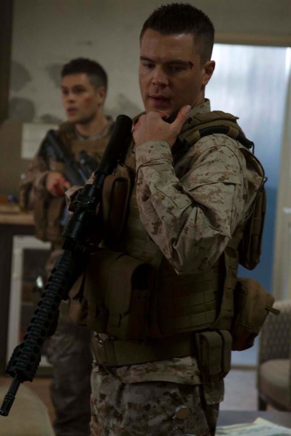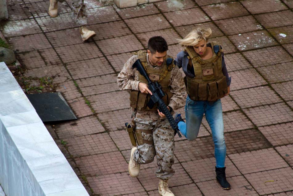[dropcap size=small]J[/dropcap]arhead, troisième volet : le caporal Evan Albright (Charlie Weber) est envoyé rejoindre une unité au Moyen Orient, afin d’y assurer la protection d’une ambassade américaine. La mission s’annonce cool jusqu’à ce qu’Albright remarque des agissements suspects autour de l’ambassade. Il n’est malheureusement pas pris au sérieux jusqu’au moment où l’ambassade est assiégée par un groupe de terroristes qui veulent récupérer un des leurs qui les a trahis. Bien supérieurs en nombre, les assaillants déclenchent un véritable chaos. De plus, ils doivent non seulement protéger à tout prix un ambassadeur qui se trouvait là un peu par hasard, mais aussi récupérer des documents top secrets. Sécurité nationale, crise, tout y est. Cela canarde à tout-va pendant toute la deuxième partie du film, la première étant la mise en place des personnages, y compris la jolie Olivia (Sasha Jackson), informaticienne de génie au décolleté plus que généreux, ce qui est surprenant dans un contexte d’Islam radicalisé, mais surtout agent spécial maniant les armes à feux comme les marines.