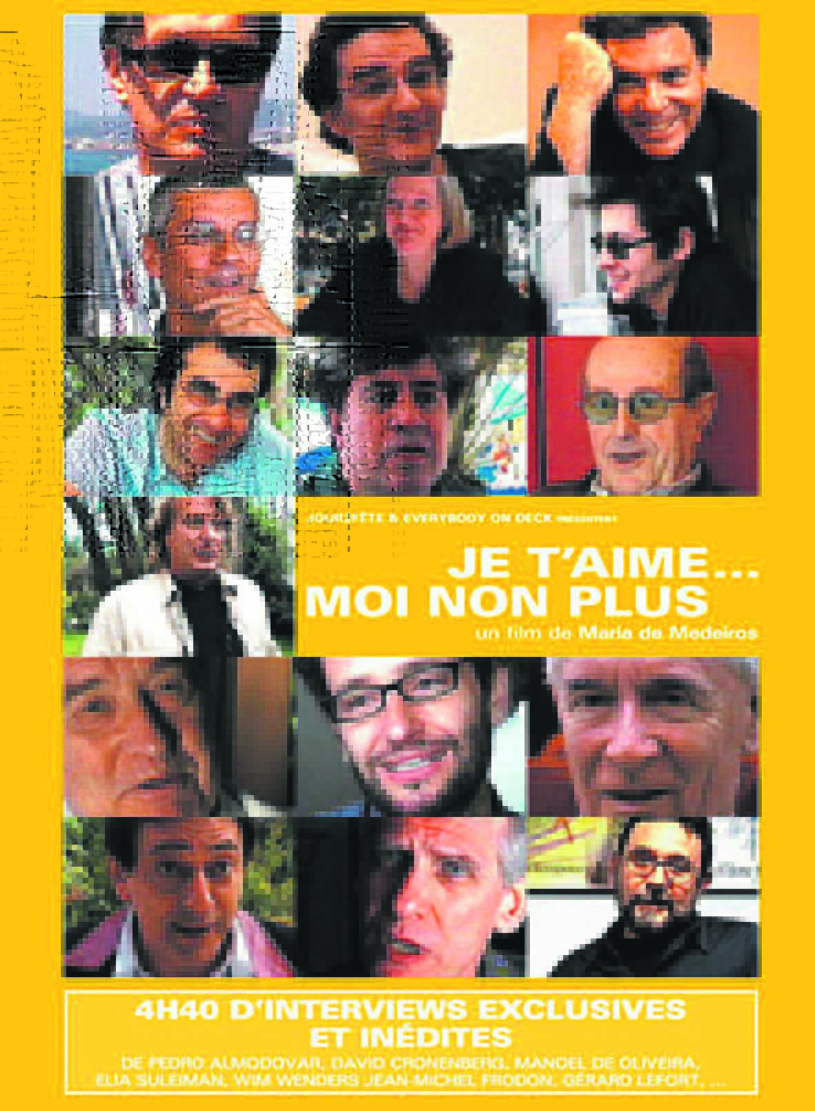 Malheureusement, la qualité technique du documentaire de Maria de Medeiros laisse à désirer. Image de très mauvaise qualité, aucun sens du cadrage, montage coupé à la serpe et musique irritante passée en boucle… Vous l’aurez compris, « Je t’aime… moi non plus » n’est pas un documentaire d’esthète (n’est pas Jean-Stéphane Bron qui veut) mais vaut largement le détour pour les nombreux témoignages qu’il contient et pour la complexité de la réflexion qui en découle. Et surtout, le DVD est généreusement fourni en bonus : plus de 4 heures d’entretiens – avec des réalisateurs (Almodóvar, Cronenberg, de Oliveira, Suleiman, Wenders) et de nombreux critiques – qu’on aurait tendance à trouver plus intéressantes que le documentaire lui-même.