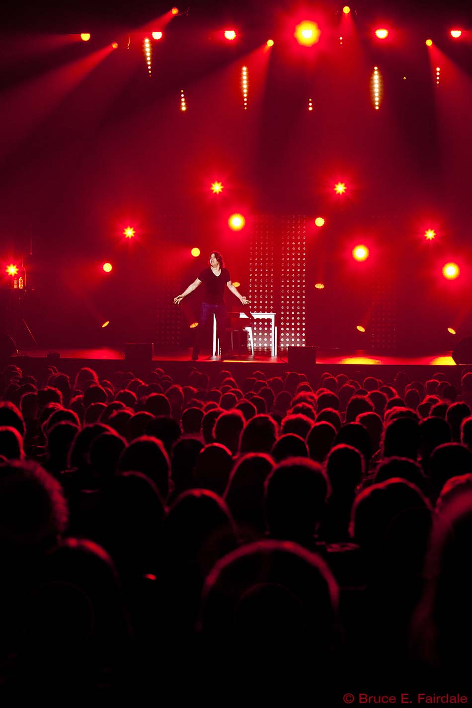 La salle de l’Arcadium à Annecy est pleine et les discussions vont bon train. « Est-ce que tu penses qu’il va être aussi drôle et mordant que dans son précédent spectacle ? », « je l’aimais bien chez Laurent Ruquier et je me réjouis de voir ce que ça donne sur scène ». Après 20 minutes d’attente et de brouhaha, il apparaît sur scène plein d’entrain.