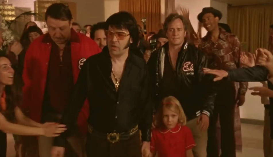 Autre point négatif, le film est diffusé avec un grain qui le rend légèrement imparfait, comme l’étaient les films des années 70, mais avec trop de reflets jaunasses. Le réalisateur a choisi une narration de l’histoire faisant très documentaire, ce qui finalement empêche de s’attacher réellement aux personnages. On regrette aussi que le fil de l’histoire soit parasité par trop de scènes de la vie dissolue d’un Elvis décadent.