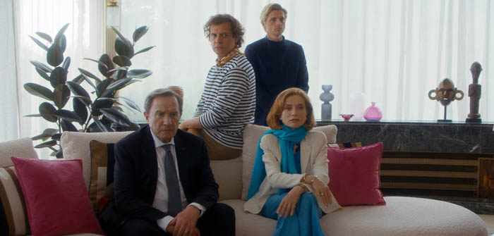 Cette nouvelle œuvre d’une durée de deux heures captive autant le spectateur qu’il le perturbe. Pas seulement par l’ambiance pesante, les sous-entendus et des dialogues parfois surprenants, mais en particulier par une présentation caricaturale des personnages principaux. Ainsi nous trouvons la star française Isabelle Huppert (54 ans de carrière et 166 films et séries tournées) dans un rôle innovant qu’elle tient à merveille. Celle d’une femme d’affaire friande de salamalecs en tous genre qui sort son carnet de chèque comme on boit du café. Dans le rôle du mari nous avons une autre star du cinéma français en la personne d’André Marcon (Marguerite, Un homme idéal, Requiem, Les Destinées sentimentales). Discret tout en étant fort présent dans le film, son personnage n’est que l’ombre de sa femme, jusqu’à son tragique décès. Quant au comédien Laurent Laffite (Au Revoir Là-Haut, Le Comte de Monte Cristo, Tapie, Les Petits Mouchoirs), il joue le Bouffon de service à qui il ne manque que les grelots. Le profiteur patenté, Pierre-Alain Fantin, est si bien interprété qu’on le déteste durant toute la projection.