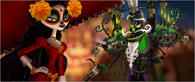 On pouvait espérer que « La Légende de Manolo » se place parmi les belles réussites produites par Del Toro. Projet nourri de longue date par son réalisateur Jorge R. Gutierrez, le film avait pour lui de baser son univers dans le folklore mexicain du Jour des Morts, promettant par-là une imagerie riche et peu commune. Au final, c’est précisément ce qui caractérise le dernier représentant du studio d’animation de la Fox : une originalité et une richesse, tant thématique que visuelle, qu’on ne trouve que trop rarement dans ce genre de production. Jouant sur les récits enchâssés, le film débute sur la visite au musée d’une classe de bambins indisciplinés, à qui l’on contera l’histoire qui occupera la majorité du métrage : amis depuis l’enfance, Manolo et Joaquin sont tous deux amoureux de Maria. Lorsqu’ils se retrouvent au cœur d’un pari entre deux divinités, leur rivalité pour l’amour de la jeune femme prendra des proportions bien plus grandes qu’attendues, au point d’envoyer Manolo traverser les Royaumes des Morts et des Oubliés.