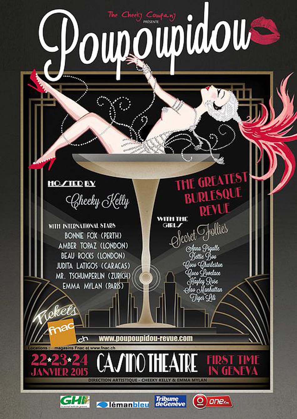 Les 23 et 24 janvier derniers c’était l’été en plein hiver au Casino-Théâtre où les pin-ups de la revue burlesque Poupoupidou ont fait monter la température. Présenté par la meneuse de revue Cheeky Kelly (également productrice de la revue), le spectacle a fait salle comble. Hommes et femmes de tous âges étaient présents pour assister à un spectacle qui a fait rimer glamour avec humour et qui a réuni les stars internationales du genre ainsi que la troupe des Secret follies. La première partie se déroulait dans le Chicago des années 20, tandis que la deuxième nous entraînait dans les arts du cirque présentés de façon très sexy. Durant plus de 2 heures se sont succédés de nombreux effeuillages. Jamais vulgaires, mais toujours très élégants, esthétiques et raffinés, ces strip tease rétro se sont arrêtés au string et au cache-tétons. Les spectateurs étaient invités à participer par leurs encouragements. Certains ont notamment été sollicités par les belles pour le plus grand plaisir de la salle. C’est Emma Mylan qui était la directrice artistique et chorégraphe de ce show.