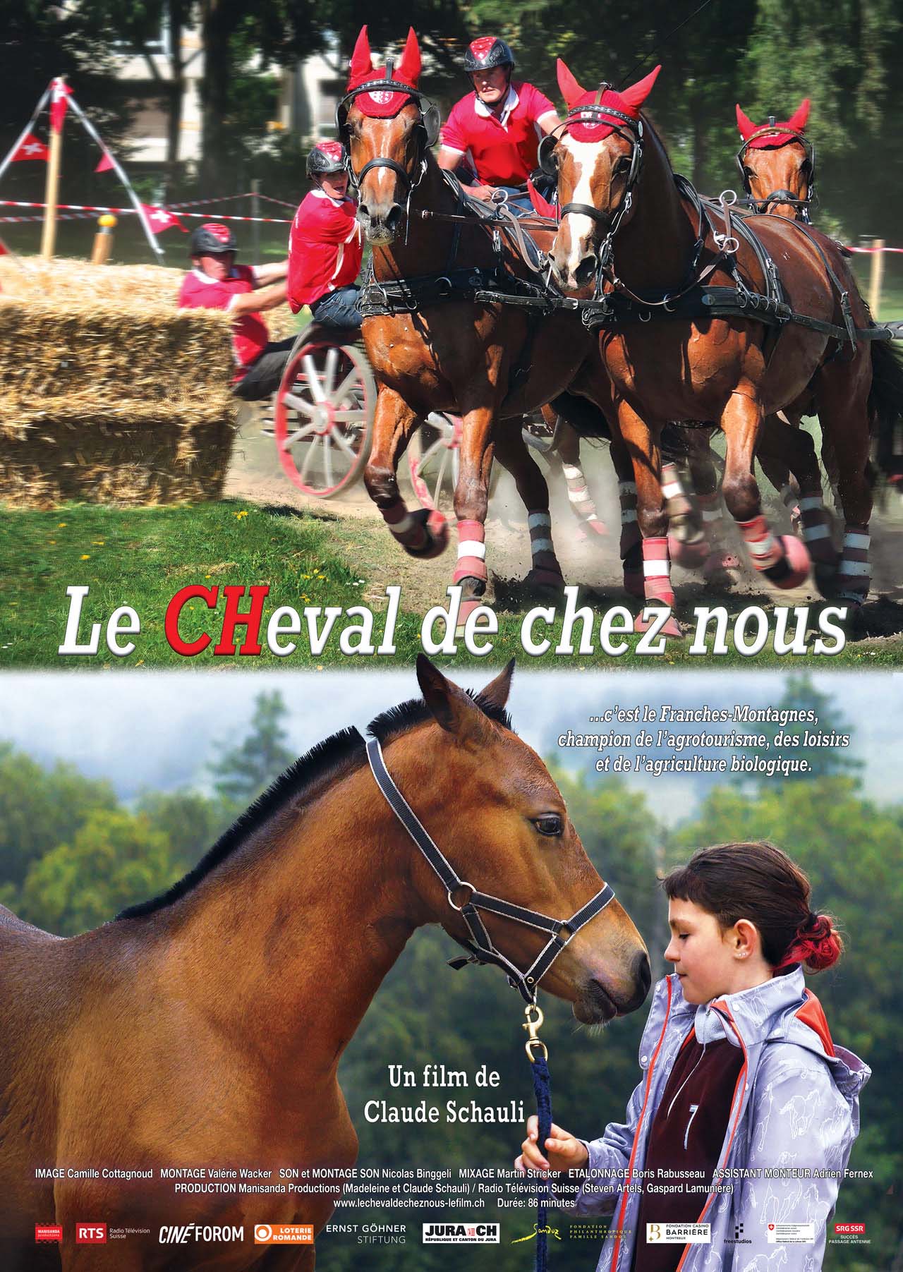 Anciennement dédié à l’agriculture, aux attelages des diligences et à l’armée, il est devenu aujourd’hui un cheval apprécié et recherché dans l’agritourisme et les loisirs grâce à son caractère facile et sa maniabilité. Le changement climatique, toujours plus préoccupant, pousse de nombreux agriculteurs à l’employer de nouveau pour les travaux agricoles, des vignes et le débardage en forêt. Tourné durant une année, ce documentaire suit aussi l’évolution d’une jeune pouliche, Alizée, née devant la caméra ; réussira-t-elle les tests et concours pour devenir une digne Franches-Montagnes ?