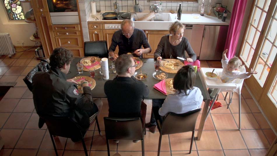 Alors que sa mère combat le cancer, sa soeur annonce qu’elle est enceinte et son père s’attelle à rénover la salle à manger familiale, David Maye, lui, filme. Il filme l’intimité de sa famille, les moments partagés dans la maison qui l’a vu grandir, entre les vignes du Valais, aux creux des montagnes. Les retrouvailles du dimanche autour de la cuisine de son père, les journées d’été dans le jardin fleuri, ensemble… Il filme, comme si sa caméra pouvait retenir, encore, sa famille solide et soudée, quand tout s’effrite face à la perspective de la mort.