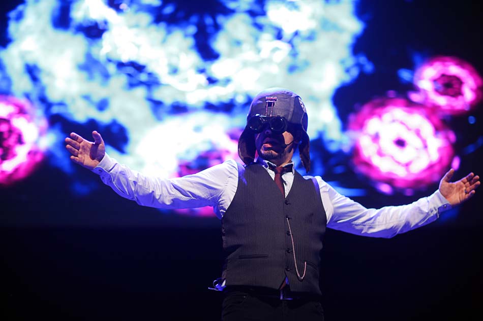 Si vous connaissez un peu l’artiste, vous savez déjà que le spectacle ne se limite pas à une succession de vannes plus ou moins bonnes. En effet, on a évidemment de l’émotion (mais bien moins que dans son précédent spectacle ou dans les dernières saisons de « Kaamelott »), mais il y a surtout de l’instructif. On y parle autant de théories scientifiques que d’événements marquants de l’histoire de l’ufologie et des sciences. On pourrait croire alors que ce spectacle est orienté pour un publique hautement intellectualisé, mais ce serait oublié la dimension humaine des œuvres d’Alexandre Astier. S’il y a une chose qu’il sait très bien faire, c’est de mettre l’humain au centre de son humour. On se retrouve alors, au même titre que ses personnages, tous au même niveau. Peu importent nos origines, nos affinités, nos « niveaux » sociaux ou nos métiers, nous sommes tous égaux face à l’humour de l’artiste. Le seul bémol, à mon humble avis, serait le running gag du système d’exploitation défectueux, qui ne fonctionne que moyennement. Pour le reste, on retrouve tout son génie habituel, tant dans la précision et la justesse que dans la drôlerie de ses anachronismes linguistiques.