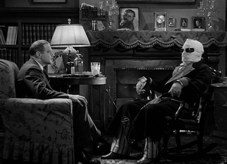 Avec: Claude Rains (Dr Griffin), Gloria Stuart (Flora Cranley), William Harrigan (Dr Kemp), Henry Travers (Dr Cranley), Una O’Connor (Mme Hall), Forrester Harvey (Mr Hall), Holmes Herbert (Le chef de la police), E.E Clive (Constable Jaffers), Duddley Digges (Le chef détéctive), Harry Stubbs (Inspecteur Bird) & Donald Stuart (Inspecteur Lane).