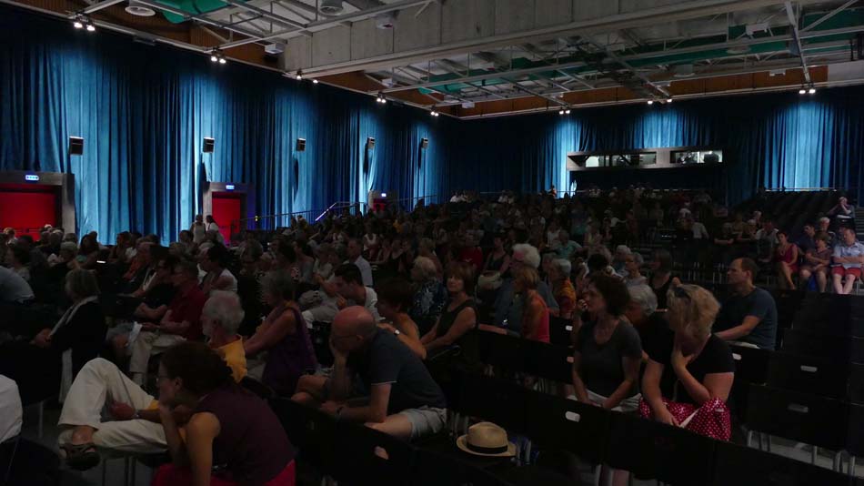 J’ai ensuite couru sur l’asphalte brûlant pour rejoindre à temps La Sala, qui se trouve en périphérie de Locarno, pour voir « ¾« . Le manque de sommeil donne vite lieu au manque de concentration. J’avais une heure d’avance, ayant mal lu l’heure… C’était un plaisir d’attendre au soleil, en nage. C’était parfait. ¾ suit les tribulations d’une petite famille, avec un père physicien fort sympathique, mais fantasque, sa fille qui est une pianiste très exigeante et dure avec elle-même dans son apprentissage et son petit frère, un charmant cabotin qui fait les 400 coups. J’ai tenu moins de vingt minutes, car à part le personnage attachant du petit frère, rien ni dans l’histoire, ni dans le style ne me retenait.
