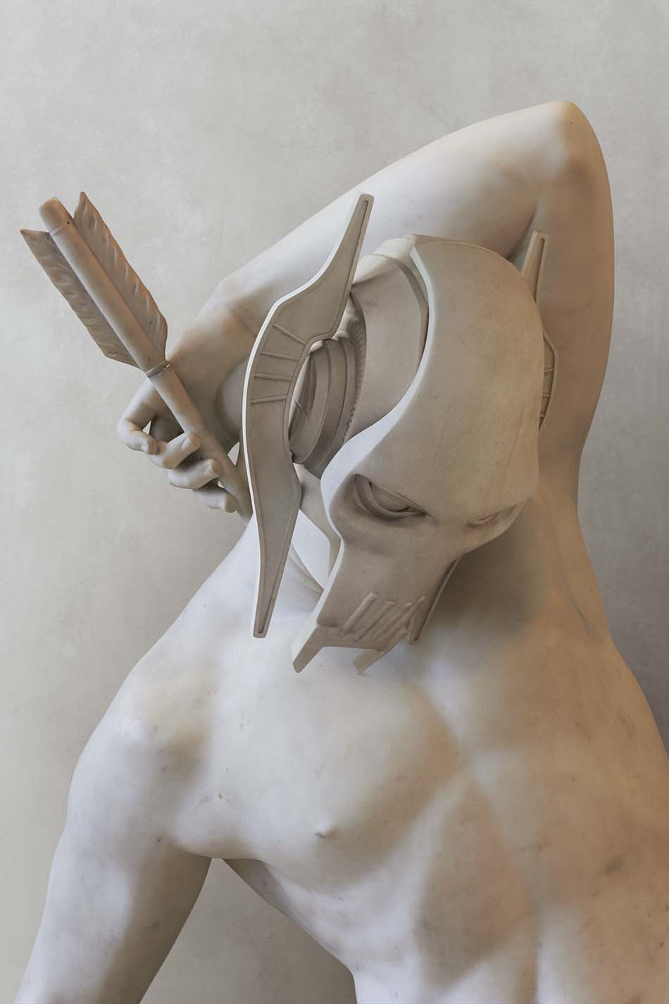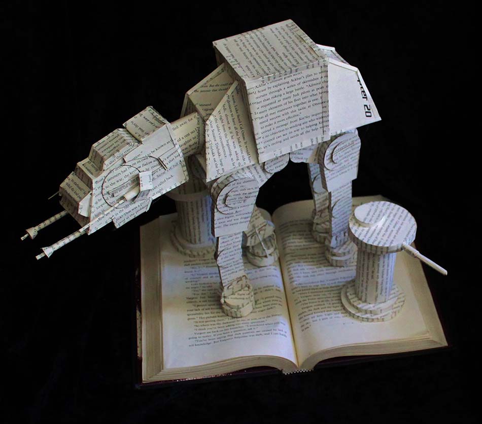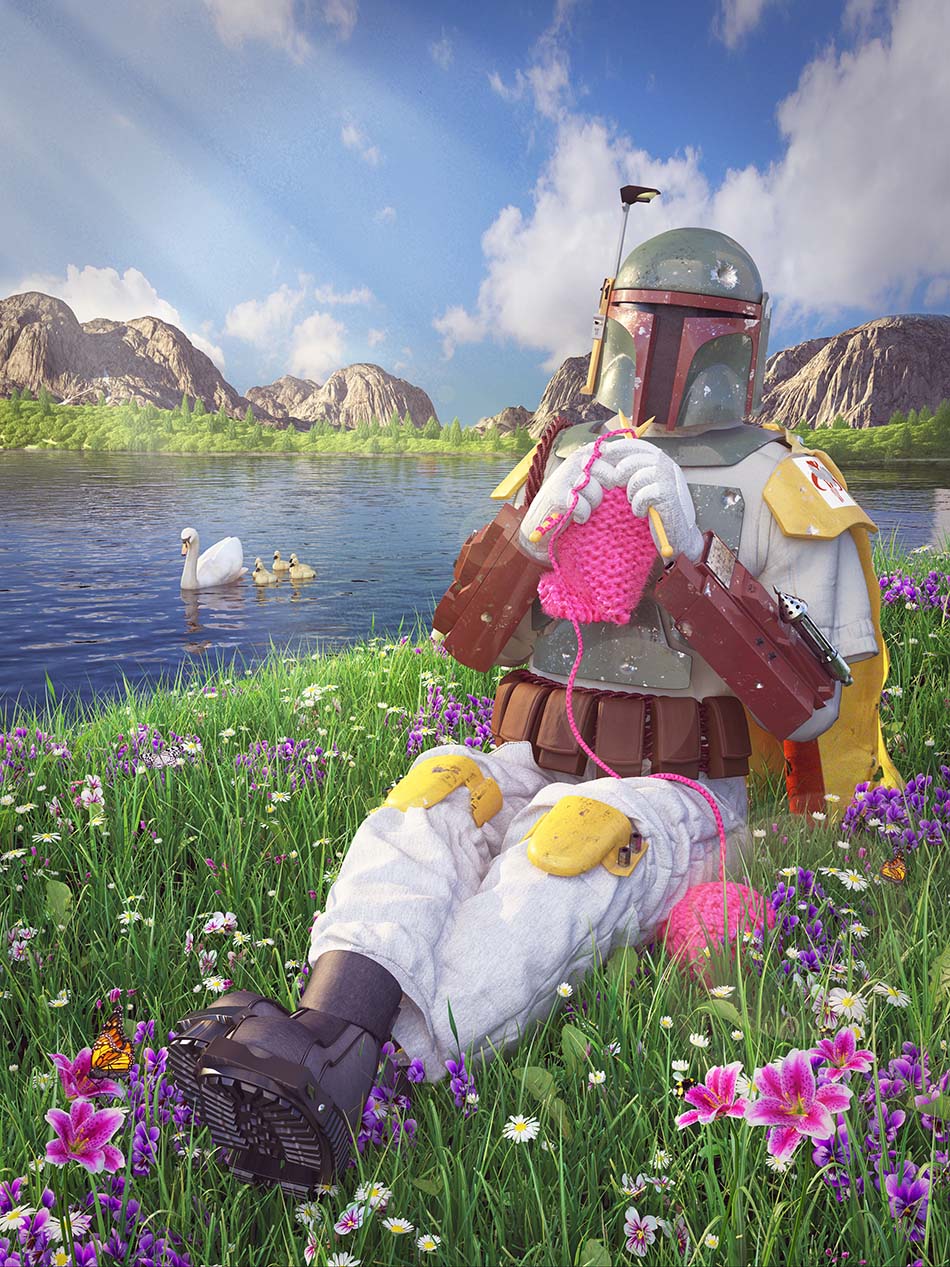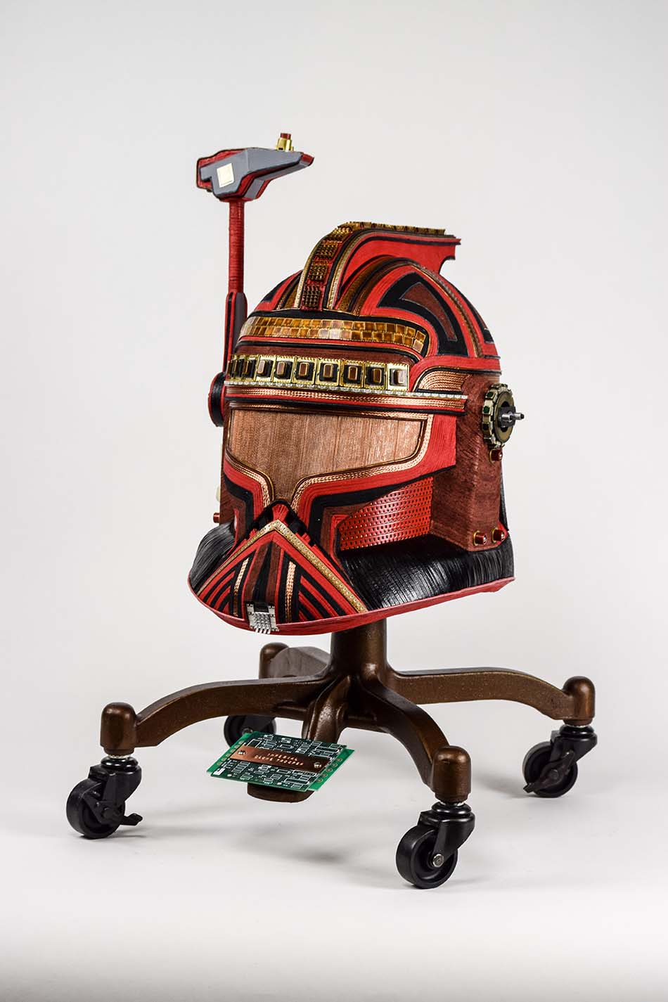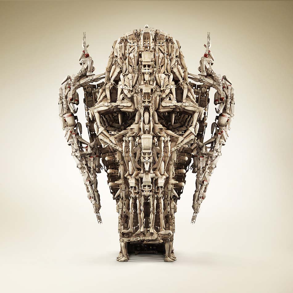 Mais si l’exposition prend en compte ce contexte historique, elle met l’accent sur les pères modernes de Star Wars, ces artistes contemporains qui se sont réapproprié cet univers pour en faire de l’art, leur art. La Maison d’Ailleurs expose 13 artistes, 13 pères, avec des approches singulières mais qui ont au moins un point commun : chacun utilise Star Wars comme matière première pour parler de sa vision du monde. Car, bien que fictif, l’influence de cette saga sur notre réalité n’est plus à prouver. Ainsi, Cédric Delsaux aime à raconter que la construction de l’immense tour Burj Khalifa aurait été inspiré aux architectes par le visionnement des gratte-ciels qui jalonnent la planète fictive de Coruscant dans Star Wars.