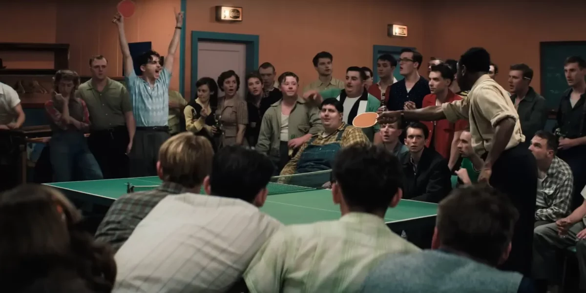 Dans le New York des années 1950, le tennis de table a fait naître une véritable sous-culture peuplée de magouilleurs, de génies et de marginaux. On pratiquait cette discipline dans des salles clandestines enfumées, au cours de fêtes organisées sur les terrasses des immeubles, dans les auberges de jeunesse, les dortoirs des prestigieuses universités de la côte Est du pays, et les immeubles du sud de la ville. C’est parmi ces outsiders, ces êtres sans scrupules, que les scénaristes du film (Safdie et Bronstein) ont découvert un nouveau territoire pour laisser libre cours à leur passion pour les personnages faillibles et les univers interlopes.