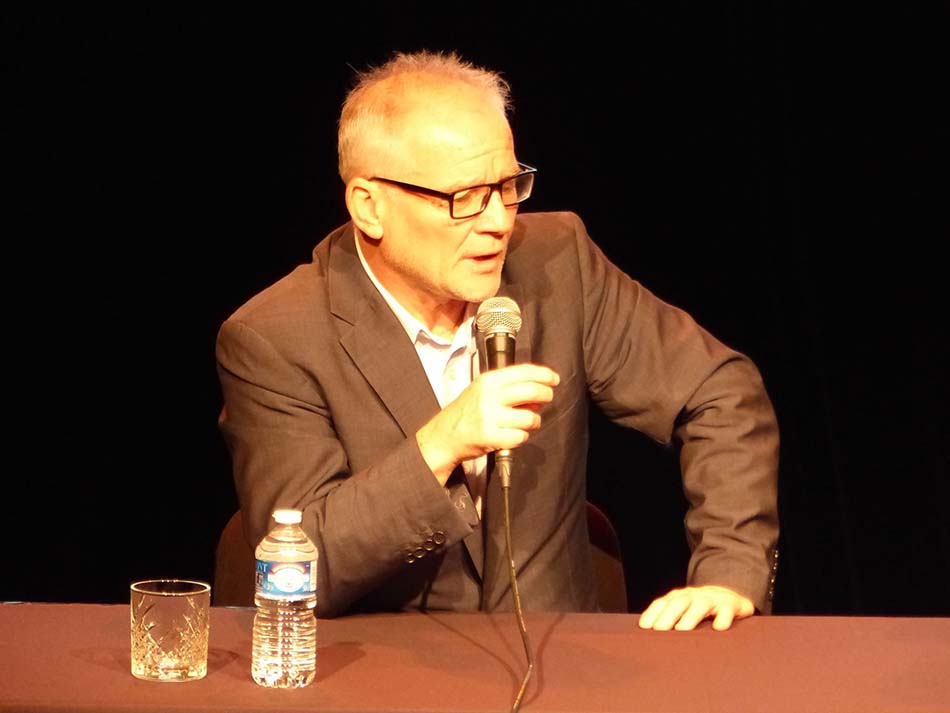 « Ce festival de Lyon, et, des festivals, j’en ai fait quand même quelques-uns, est le plus beau et le plus incroyable que j’ai jamais rencontré. Voir à cette heure-là qu’il y a autant de monde, alors qu’ils n’ont pas fait le mâchon ( tradition gastronomique servie aux heures matinales par des restaurants traditionnels lyonnais ), et qu’ils se sont levés normalement.. C’est fantastique ! Toutes les salles sont pleines pour aller voir les films de 1932, 33, 34, 35, des copies restaurées, des films de Chaplin, de Buster Keaton, etc. Christian Carion me disait tout à l’heure qu’il a emmené ses enfants à la Halle Tony Garnier pour aller voir Le Kid. Il y avait 4’500 personnes dont 3’500 jeunes – entre 10 et 16 ans – ; ils avaient la larme à l’oeil… C’est formidable. »