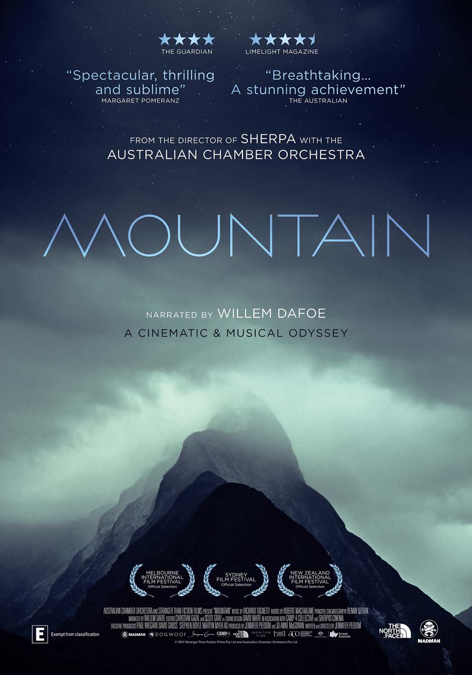 La réalisatrice maintes fois récompensée Jennifer Peedom (SHERPA) s’est associée au célèbre Australian Chamber Orchestra pour créer MOUNTAIN. Cette œuvre filmique et musicale impressionnante retrace un pan de l’histoire ponctuée d’échecs et de succès de notre éternelle fascination pour la montagne. Le film met en lumière les candides prémices de son exploration, avec tout ce qu’elle recèle et suscite de joies, de frissons et de dangers. La montagne en tant que symbole spirituel, zone frontière et théâtre d’opérations guerrières. Mais aussi sous le jour de sa commercialisation croissante, de nos innombrables et diverses tentatives de la contrôler, et de son rôle primordial au centre de l’écosystème de notre planète. À partir de ses propres archives, mais également à l’aide de nouvelles images tournées auprès de tribus montagnardes de régions reculées de Papouasie-Nouvelle Guinée et du Japon, Jen Peedom nous convie avec MOUNTAIN à un fabuleux voyage dans les coulisses de paysages aussi grandioses qu’uniques, de l’Himalaya à l’Antarctique, d’Hawaï à l’Afghanistan.