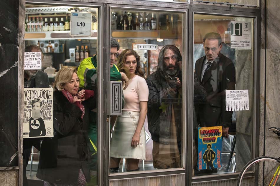 Et quel casting ! Blanca Suárez tient la tête d’affiche et semble être l’étoile, non plus montante, mais véritablement filante du cinéma espagnol contemporain. Récemment dans la série Les Demoiselles du câble (Gema R. Neira, Ramón Campos, 2017) et dans le long-métrage Les Amants Passagers d’Almodovar en 2013, la demoiselle a plus d’une corde à son arc et est vraiment une actrice talentueuse. A ses côtés, Mario Casa, avec qui elle a déjà partagé l’écran dans Mi Grand Noche (2013), Les Sorcières de Zugarramurdi (2014) et El Barco (2012), et qui dans ce film joue Nacho, le hipster collé à son iPad, tout en révélant plus tard un côté bien plus sombre de sa personnalité. Carmen Machi pour le personnage de Trini est la femme au foyer qui passe ses journées à perdre son argent dans la machine à sous du bar, sans parler à personne, de dos, seule. Actrice fétiche d’Almodovar, elle est aussi celle d’Alex de la Iglesia et, après 18 ans de carrière, continue de se montrer à l’écran avec beaucoup de talent. Impossible de ne pas mentionner Amparo, la tenancière du café, avec son visage et sa voix si particuliers et pourtant attachants. Incarnée par Terele Pavez, Amparo est la figure maternelle du film, mais n’hésitera pas non plus à abandonner ses protégés pour sa propre survie. Bref, un éventail d’acteur à faire pâlir plus d’un réalisateur, mais Alex de la Iglesia a su gérer et diriger ces monstres du cinéma espagnol pour ce film dans lequel les émotions et la psychologie de chacun des personnages a une importance considérable.