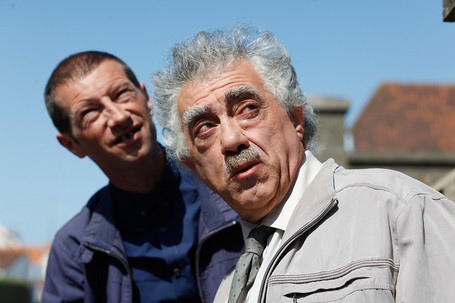 Nord de la France: d’étranges crimes sont commis dans les environs d’un petit village côtier. Des cadavres de vaches attirent l’attention. D’autant plus qu’on retrouve des corps humains découpés dans leur charogne. Voilà une idée de départ qui pourrait rivaliser en sordidité avec les séries policières les plus glauques du moment. Mais il suffit de voir débouler le commandant Van der Weyden et son adjoint, le lieutenant Carpentier, pour comprendre que nous sommes ici dans un tout autre registre. Démarches de pantins désarticulés, visages bourrés de tics; la simple vision de ces deux hurluberlus provoque l’hilarité. Van der Weyden (imaginez un croisement entre l’inspecteur Derrick et Colombo) roule les yeux, amplifie chacune de ses expressions pendant que Carpentier tente de philosopher ou de maîtriser son véhicule (sa conduite sera à l’origine d’un nombre incalculable de situations comiques). Bruno Dumont prend un malin plaisir à explorer ces faciès distordus, à filmer en très gros plans ces regards hagards et à s’attarder sur ces expressions outrancières.