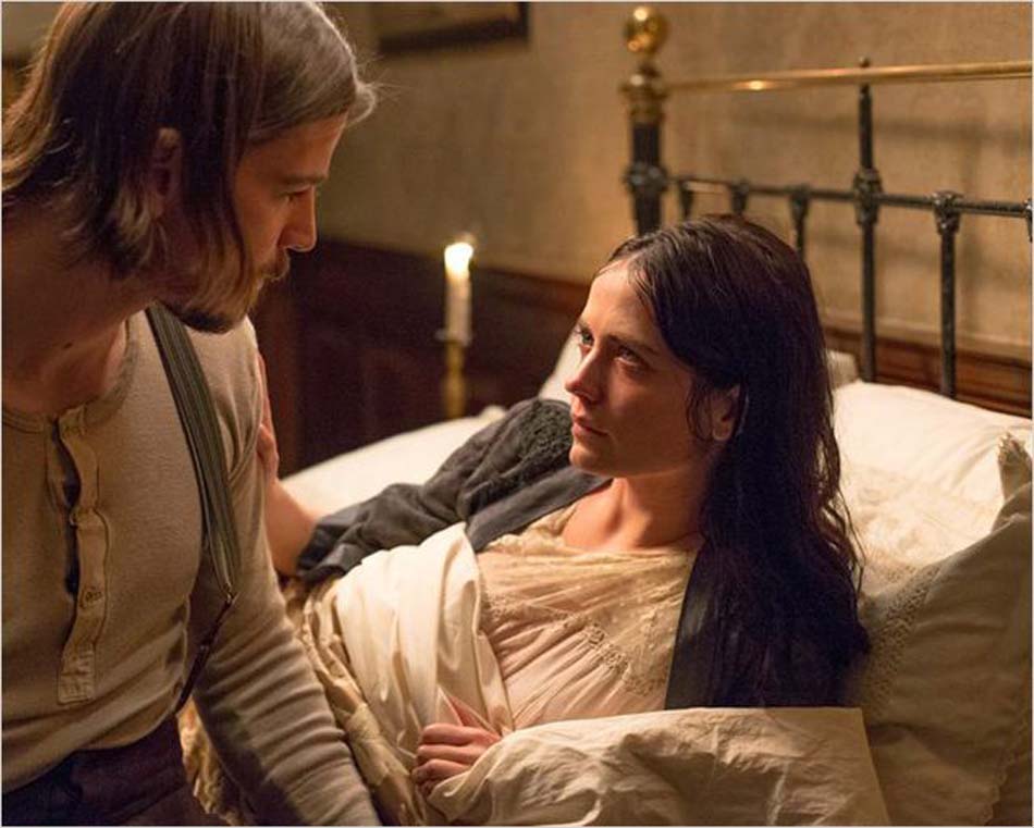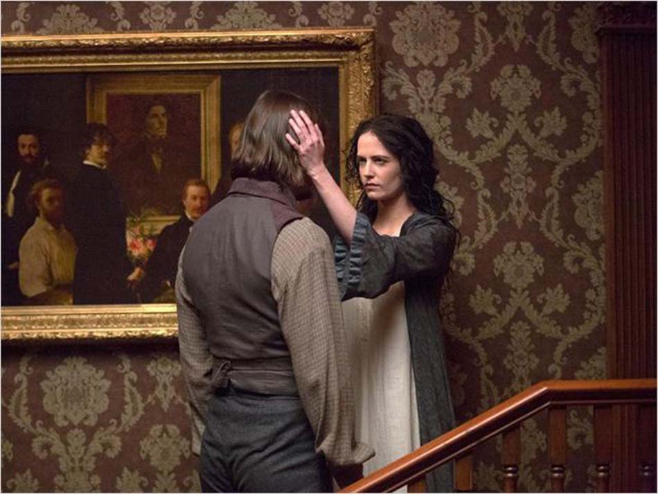 Le succès de cette série réside également dans le fait qu’elle réussit à exalter diverses émotions parfois contradictoires chez son public, par exemple en rendant ce qui est mal, beau. D’un passage émouvant, aux dialogues délicats, elle peut enchaîner sans prévenir à une séquence crue, dérangeante, où la couleur rouge détonne, impliquant des actes de violence ou d’érotisme sans retenue, mais pourvus d’un esthétisme obnubilant qui les rendent honteusement délicieux à assister. Suivre « Penny Dreadful » c’est accepter de se lancer dans une expérience émotionnelle passant continuellement d’un extrême à un autre et qui n’est possible que grâce à un casting dévoué. Si l’on peut dire sans hésiter que tous les acteurs se surpassent dans leur travail, c’est tout de même l’interprétation d’Eva Green qui mérite une salve d’applaudissements. Mmmh non, même cela parait peu suffisant. Qu’on lui jette des fleurs, des prix, voire même qu’on se mette à genoux devant une telle prouesse artistique. Green est un modèle à suivre, c’est une actrice qui n’a pas froid aux yeux. Elle est prête à se mettre dans des positions vulnérables (littéralement) et éprouvantes, de s’enlaidir pour donner à Vanessa Ives un portrait aussi réaliste que possible. Green n’incarne pas seulement, mais devient une autre personne qui lui colle à la peau et réussit à communiquer ses émotions, sans devoir piper un mot. Son sourire peut nous faire fondre, ses yeux bleus tourmentés peuvent percer n’importe quelle âme et nous laisser la porte ouverte vers la sienne, pour nous permettre de comprendre l’étendue de ce qui se passe dans sa tête. Vanessa dégage une énergie qui la rend irrésistible aux yeux des autres et des nôtres. Elle séduit sans être vulgaire, fait preuve de force même en étant envahie par la peur, est attachante même lorsqu’on connait son passé scandaleux. Les quelques épisodes, consacrés entièrement à elle, sont de loin les plus marquants, car ils nous donnent la possibilité de passer plus de temps pour découvrir en profondeur la complexité de son personnage.