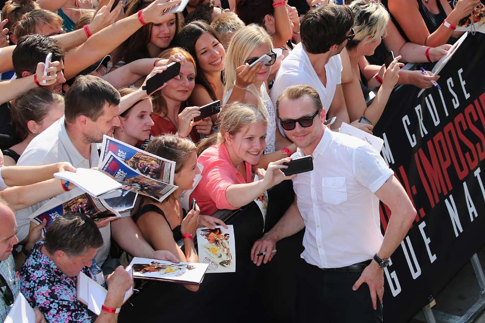 Simon Pegg takes selfies with fand during the world premiere of ‘Mission: Impossible – Rogue Nation’ at the Opera House (Wiener Staatsoper) on July 23, 2015 in Vienna, Austria. (Photo by Gisela Schober/Getty Images for Paramount Pictures International)