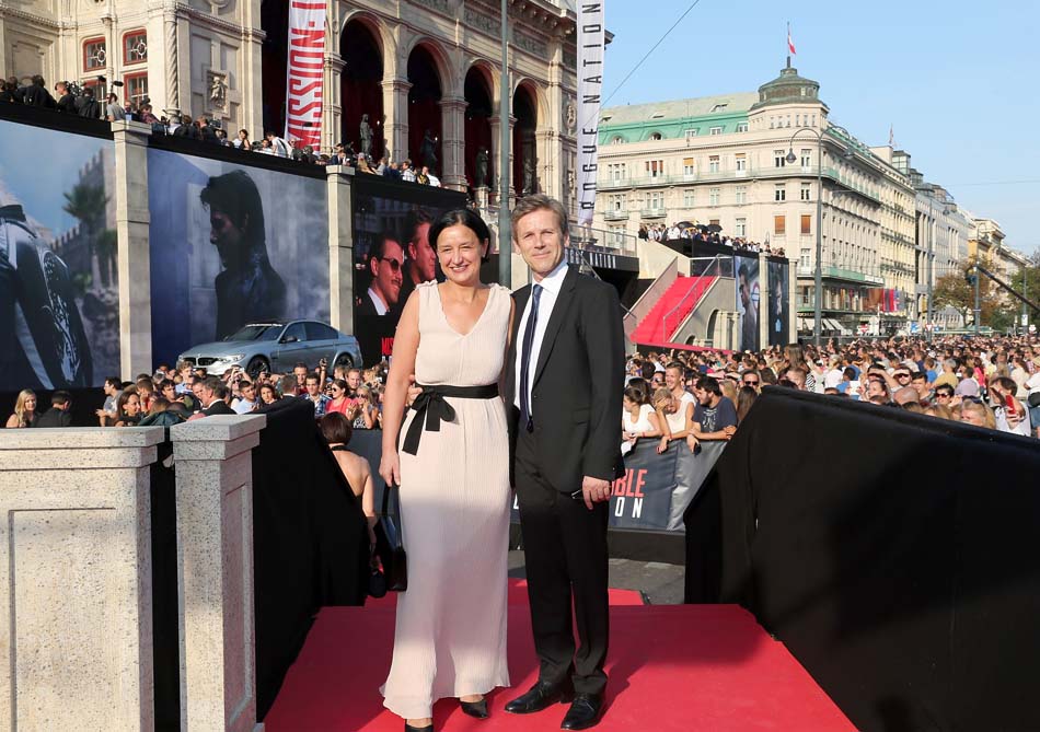 Josef Ostermayer and guest attend the world premiere of ‘Mission: Impossible – Rogue Nation’ at the Opera House (Wiener Staatsoper) on July 23, 2015 in Vienna, Austria. (Photo by Gisela Schober/Getty Images for Paramount Pictures International)