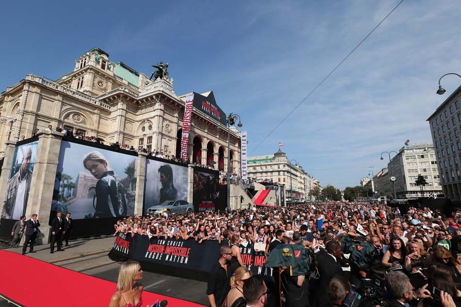 Fans attend the world premiere of ‘Mission: Impossible – Rogue Nation’ at the Opera House (Wiener Staatsoper) on July 23, 2015 in Vienna, Austria. (Photo by Gisela Schober/Getty Images for Paramount Pictures International)