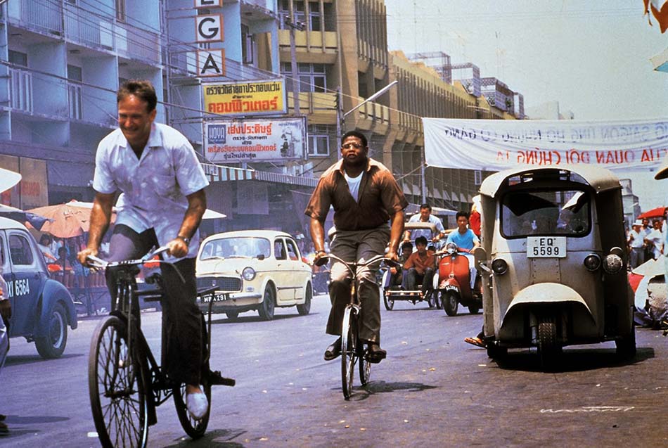 « Good Morning, Vietnam » n’est pas qu’une pure fiction. En effet, le scénariste Mitch Markowitz, qui s’était impliqué dans le 7ème Art très peu de temps, s’est inspiré de la vie du véritable Adrian Cronauer. Évidemment, l’histoire est « hollywoodisée » et bien des faits sont inexactes. Ainsi, l’animateur n’a jamais eu d’ami tel que celui du film et il n’est jamais allé se perdre dans la jungle. Mais ces rajouts, tout comme l’extraordinaire improvisation de Robin Williams, ont su être très appréciés par les critiques et le public. C’est pourquoi, il reçut un Golden Globe en 1988 pour sa performance. De plus, « Good Morning, Vietnam » n’aurait pu être égalé sans l’excellente composition de feu Alex North (« Viva Zapata ! »). Car plusieurs titres, toujours intemporels, avaient été minutieusement choisis pour les différentes scènes du long-métrage. Ainsi, « What a Wonderful Word » de Louis Armstrong est de nos jours indissociables, car le morceau représente un opposé entre les images et les paroles encore troublant, voire choquant.