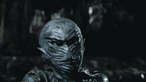 Mais le clou du spectacle réside dans chaque apparition des mutants mi-hommes, mi-poissons créés par l’infâme Dr. Moore, qui donne l’occasion de rire tout son soûl : rigoureusement inexpressifs, d’une laideur à faire fuir un aveugle (ils louchent !), leur texture présente cette rigidité suspecte propre aux costumes en caoutchouc, contraignant les malheureux acteurs engoncés à des mouvements effroyablement lents et patauds. Détail amusant, les créatures amphibies du Dr. Moore, tels des robots multifonctions, sont contrôlées via un curseur avec trois positions : Travail / Combat / Repos. Le nec plus ultra de la technologie cyborg, ma bonne dame !