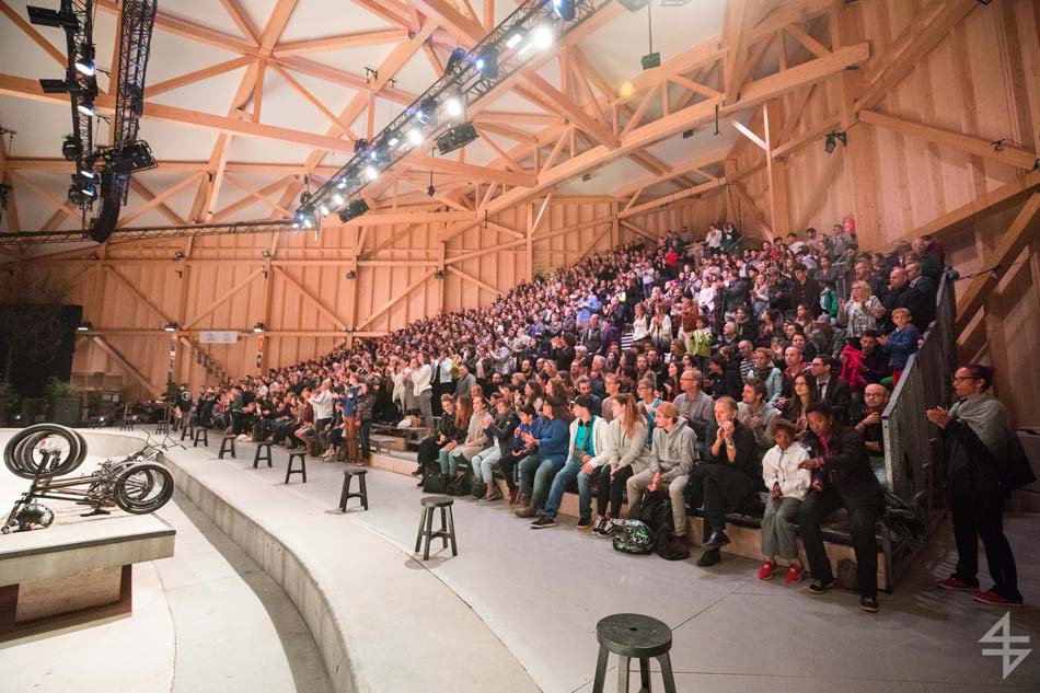 Il en impose part son architecture en bois qui semble se fondre tout naturellement, avec le peu d’arbre qui reste à Plainpalais. Pour les habitués du skatepark, ils auront la moitié de celui-ci jusqu’à la fin du spectacle le 11 octobre. En effet le skatepark fait partie intégrante du décor de Zup.