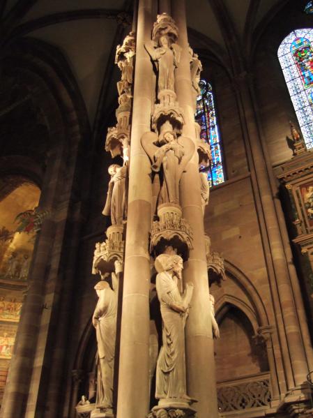 Chaque année, environ trois millions de visiteurs découvrent la Cathédrale Notre-Dame de Strasbourg. Arrivée devant, je comprends d’emblée pourquoi autant de monde souhaite la visiter, hormis sa beauté architecturale et sa flèche de 142 mètres, il y a une sorte de magnétisme qui attire à l’intérieur. L’entrée y est gratuite, par contre il faudra payer pour aller sur la plateforme.