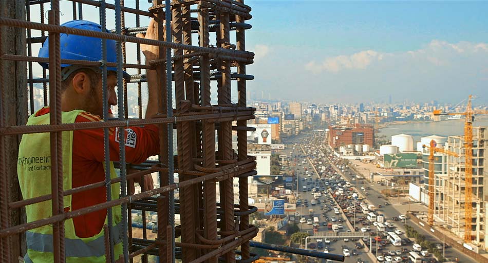 À la plage de Beyrouth. Jour après jour, à l’aurore, des ouvriers remontent des entrailles du gratte-ciel en construction où ils dorment et mangent. Ils montent aux étages supérieurs de la tour et font avancer la bâtisse vers le ciel. Ils mettent du béton, ils coffrent des colonnes et montent des parois. Pendant les récréations, leurs regards survolent la silhouette magnifique de la ville nouvellement construite au bord de la mer, une vue dont le grutier peut jouir toute la journée. Mais il leur est interdit de quitter le site de construction et de passer leur temps libre en ville ou au bord de la mer. Car les ouvriers syriens ne sont pas bienvenus dans la société libanaise. Le réalisateur Ziad Kalthoum, qui a quitté l’armée syrienne et requiert l’asile au Liban, nous soumet un film fascinant dont les images fortes sont autant de métaphores pour la vie en exil.