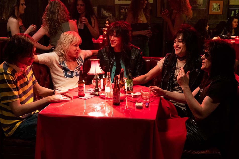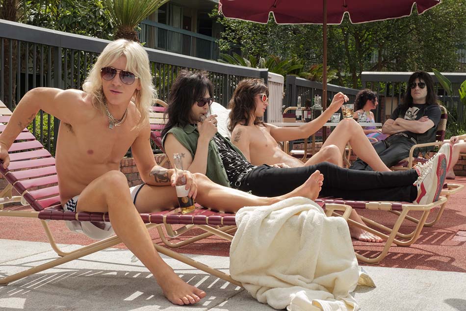 Passons au casting ! On retrouve donc Machine Gun Kelly dans le rôle de Tommy Lee, Daniel Webber(The Punisher) pour le chanteur Vince Neil, Douglas Booth est Nikki Sixx et Iwan Rheon (Game of Thrones) prend le rôle du guitariste Mick Mars. Dans le rôle du manager Doc MgGhee, on retrouve David Costabile (Breaking Bad). L’ado optimiste et naïf Tommy, le fugueur sauvage Nikki, le vieux sarcastique Micky et l’égocentrique obsédé Vince … le tout a très bien été repris et sonne crédible : façon de parler, relations au sein du groupe, mouvements et attitude sur scène… Le groupe est crédité en tant que coproducteur du film : l’équipe avait donc à ses côté le « vrai » groupe en cas de question, que ce soit directement sur le tournage, au téléphone ou par vidéoconférence. Tout a été mis en oeuvre pour que le tout sonne au plus juste : Douglas Booth (qui interprête Nikki Sixx) a donc pris des cours de basse et passé du temps avec Nikki afin de mieux s’imprégner de son personnage au point de s’informer sur la façon dont il se piquait à l’héroïne, de ses pensées durant sa période d’addiction et même de l’aspect de ses veines lors des shoots !