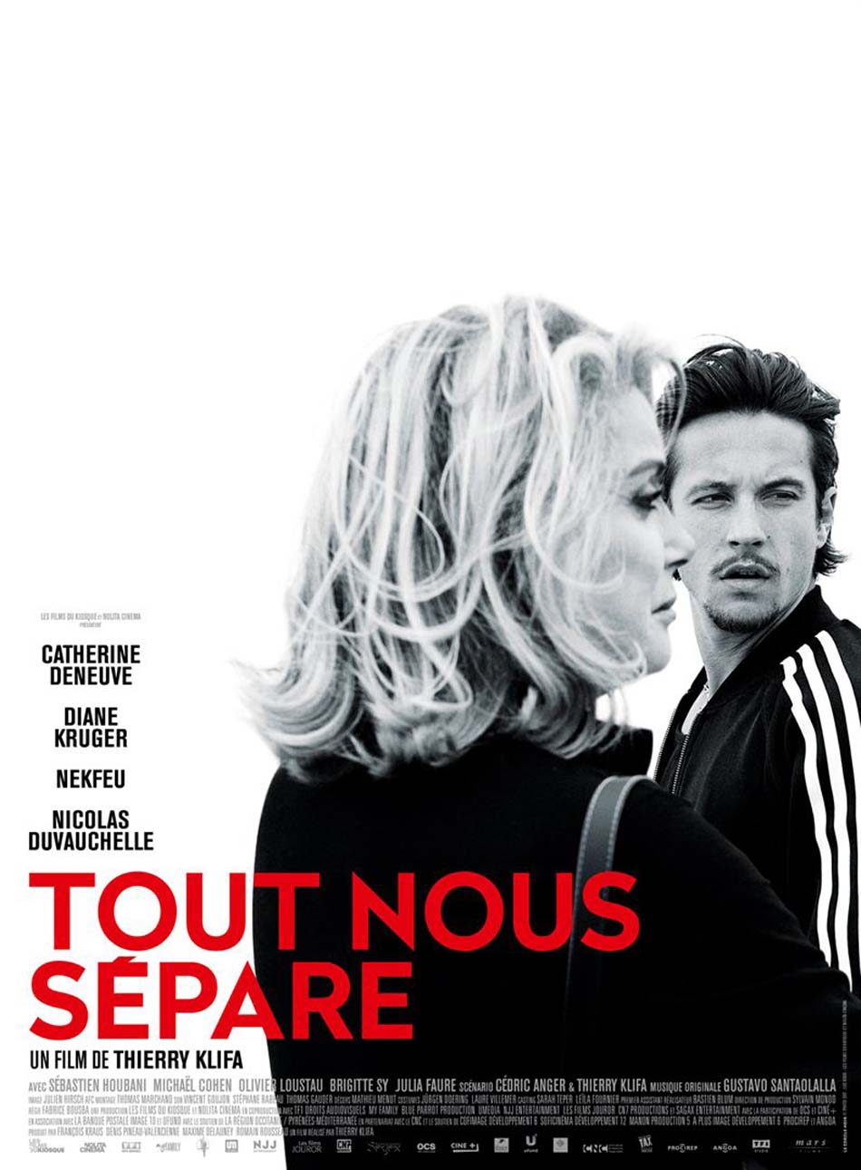 La genèse de « Tout nous sépare » est à mettre en parallèle avec l’envie qu’avait Thierry Klifa d’écrire pour Catherine Deneuve, son actrice fétiche qui avait tourné sous sa direction dans « Les yeux de sa mère » et « Le héros de la famille ». Le réalisateur a voulu faire cette fois-ci un film noir ancré dans la réalité actuelle, avec ce qu’elle a de violente et de triviale. Le scénario est basique : une femme défend sa fille coûte que coûte contre des malfrats. Le but est de confronter deux mondes à la fois proches et complètement étanches.