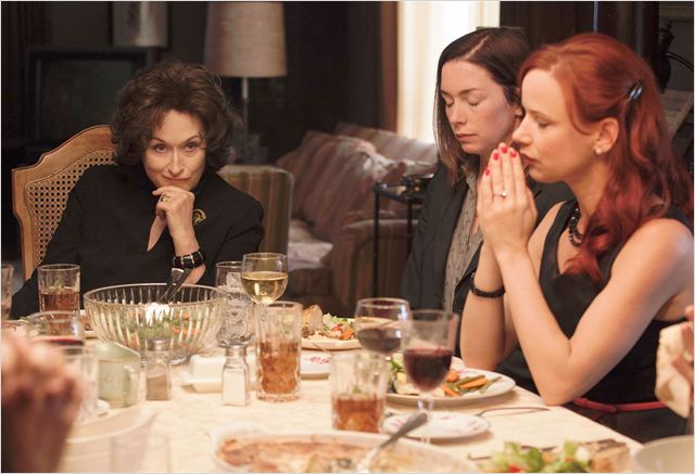 On retrouve donc une petite fratrie pleine de non-dits, qui se retrouve auprès de leur mère, après le suicide de leur père. Déjà pas mal amochée et dépressive, celle-ci va vider son sac et rouvrir toutes les vieilles plaies si difficilement refermées. Adapté de la pièce du même nom, le récit est un archétype du mélodrame américain, style qu’on aurait cru trop usé pour s’y réattaquer. Les ficelles dépassent donc de partout et pourtant on se surprend à écarquiller les yeux à chaque nouvelle révélation, chaque fois plus grosse que la précédente. Le casting mille étoiles doit sûrement y être pour quelque chose. Mais malgré son manque d’originalité, « August: Osage County » réussit à nous prendre aux tripes et à nous laisser un goût amer dans les yeux.