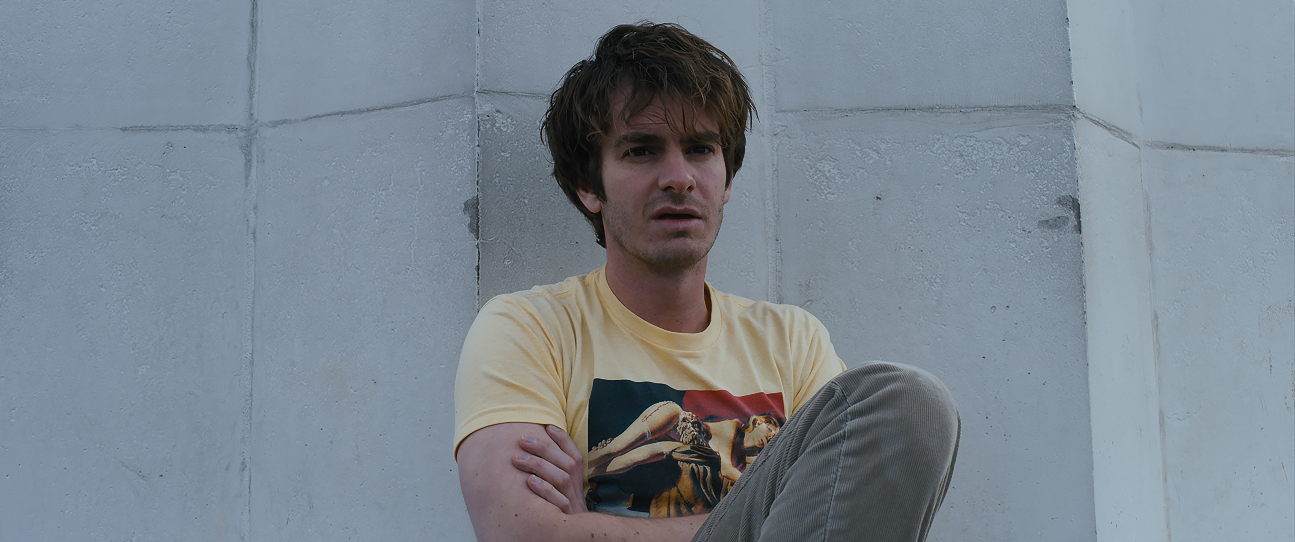 Son antihéros, c’est Sam (Andrew Garfield), jeune adulte désœuvré qui baigne dans la nostalgie du début des années 90, entre fumette, cinéma, musique, comics et jeux vidéo. Depuis l’arrière de son petit appartement, il passe son temps à espionner ses voisines, de la vieille hippie à la bimbo promenant son petit chien – l’espace de quelques plans, on se souvient de Marlowe qui observait avec amusement sa cour intérieure dans le « Long Goodbye » signé Robert Altman. La bimbo, femme fatale en devenir, c’est Sarah (Riley Keough), dont Sam s’amourache immédiatement. Bien qu’en couple avec une aspirante actrice, il se jette à l’eau et l’accoste un soir. En retour, elle lui offre de venir chez elle. Interrompus dans le feu de l’action par ses colocataires, elle lui promet de le revoir. Le lendemain, Sam revient frapper à la porte. À sa grande surprise, Sarah n’est plus là, ses colocs non plus, et l’appartement est entièrement vidé de son mobilier. Désemparé, Sam n’a plus en mains qu’un polaroïd et de très maigres indices glanés au fond d’une boîte en carton pour espérer retrouver l’objet de son coup de foudre.