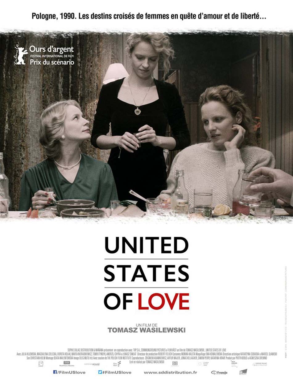 « United States of love » prend place dans un quartier populaire de la Pologne, au moment où le mur de Berlin vient de tomber. L’histoire raconte successivement la vie de quatre femmes différentes. Il y a tout d’abord Agata, une femme mariée depuis 15 ans à un homme qu’elle n’aime plus et avec qui son couple est devenu fade. Il y a ensuite Iza, une femme plus mûre, directrice d’une école et très amoureuse d’un homme marié dont elle est l’amante. Mais ce dernier, venant tout juste de perdre sa femme, décide de mettre fin à sa liaison avec Iza, ayant trop de remords envers sa femme décédée. Il y a également Renata, une femme plus âgée ayant travaillé comme enseignante dans l’école où Iza est la directrice. Après s’être fait renvoyer par cette dernière, Renata se trouve très seule et se prend d’affection pour sa voisine de palier Marzena, qui se trouve être la sœur d’Iza et la meilleure amie d’Agata. Marzena vit elle aussi une histoire d’amour compliquée avec un homme vivant en Allemagne et qu’elle n’a pas pu voir depuis des années.