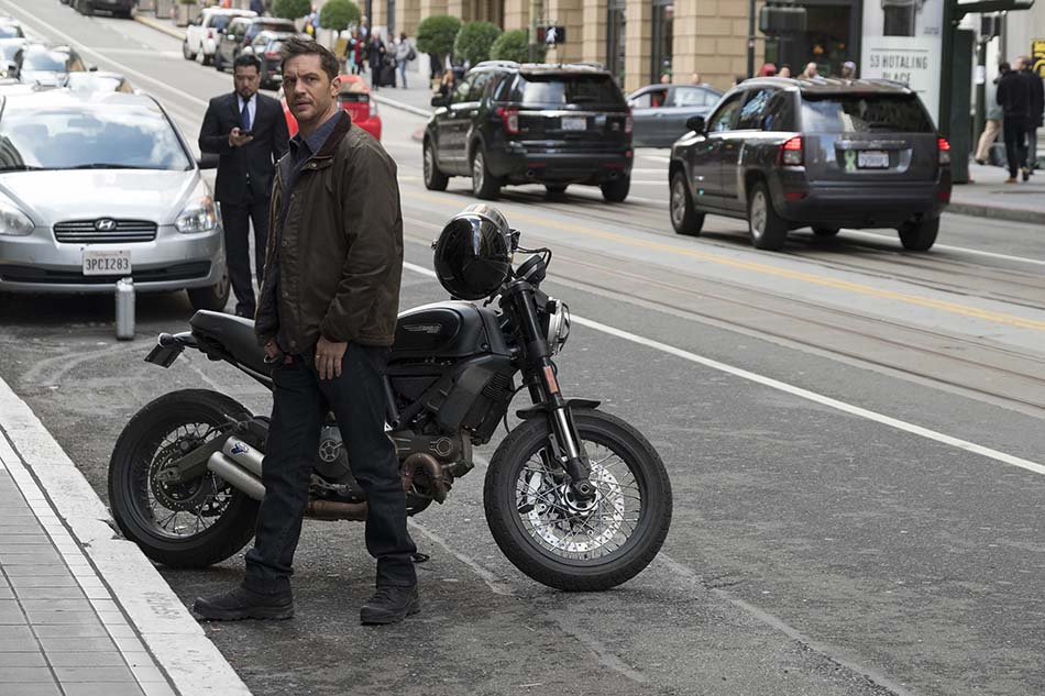 Côté cinéma, « Venom » a été filmé en de trop rares occasions encore. Le premier acteur à le jouer fut Topher Grace dans Spider-Man 3 de Sam Raimi en 2007. S’il était prévu qu’il endosse ce rôle pour plusieurs suites, finalement les projets ne se concrétiseront jamais. Dommage, car sa performance de l’époque reste inoubliable. Toujours est-il que le nouvel acteur principal Tom Hardy (Dunkirk), offre une prouesse tout autant remarquable. Si les 15 premières minutes donnent souvent l’impression d’être clichées, par exemple au travers des éthiques et du caractère du héros, l’arrivée de « Venom » modifie très positivement la fiction. Musicalement, esthétiquement et virtuellement, l’ensemble est réussi et opère à merveille. Les rares plans numériques ratés sont rapidement oubliés dès l’arrivée de l’anti-héros.
