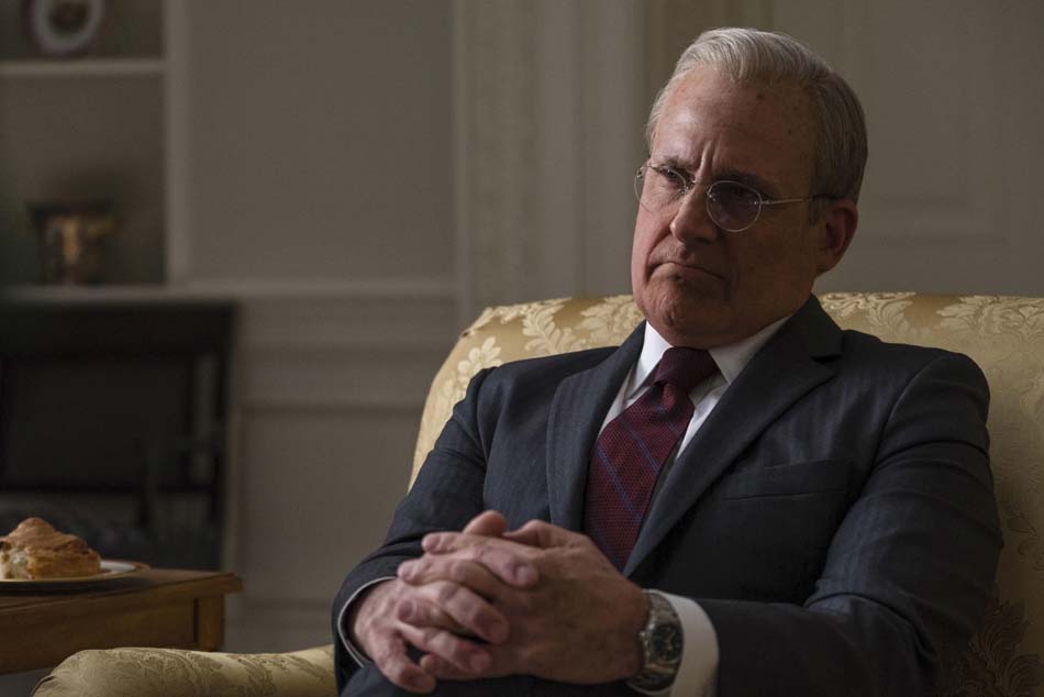 Après un commencement un peu chaotique et beaucoup d’informations qui peuvent éventuellement sembler être un peu trop pour nos pauvres cerveaux de profanes non-initiés au système politique et juridique américain, « Vice » a une réalisation étonnante qui a beaucoup divisé les critiques et le public. Mais avant de décrire plus en détails le mode narratif du film, il s’impose de dresser un mini portrait de l’homme au centre de ce film : Dick Cheney, après des années à la Maison Blanche à remplir diverses tâches, devint, de 2001 à 2009, le vice-président du président George W. Bush. Pour être un peu plus précis, Cheney était aux premières loges lors de divers conflits liées à la politique étrangère comme la guerre en Afghanistan, l’invasion en Irak, et plus généralement le début de la sempiternelle guerre contre le terrorisme dans laquelle l’administration Bush se lança suite aux événements du 11 septembre 2001. La façon avec laquelle Cheney devint un des hommes politiques les plus influents de son époque sans réellement se faire remarquer est absolument fascinante et terrifiante à la fois.