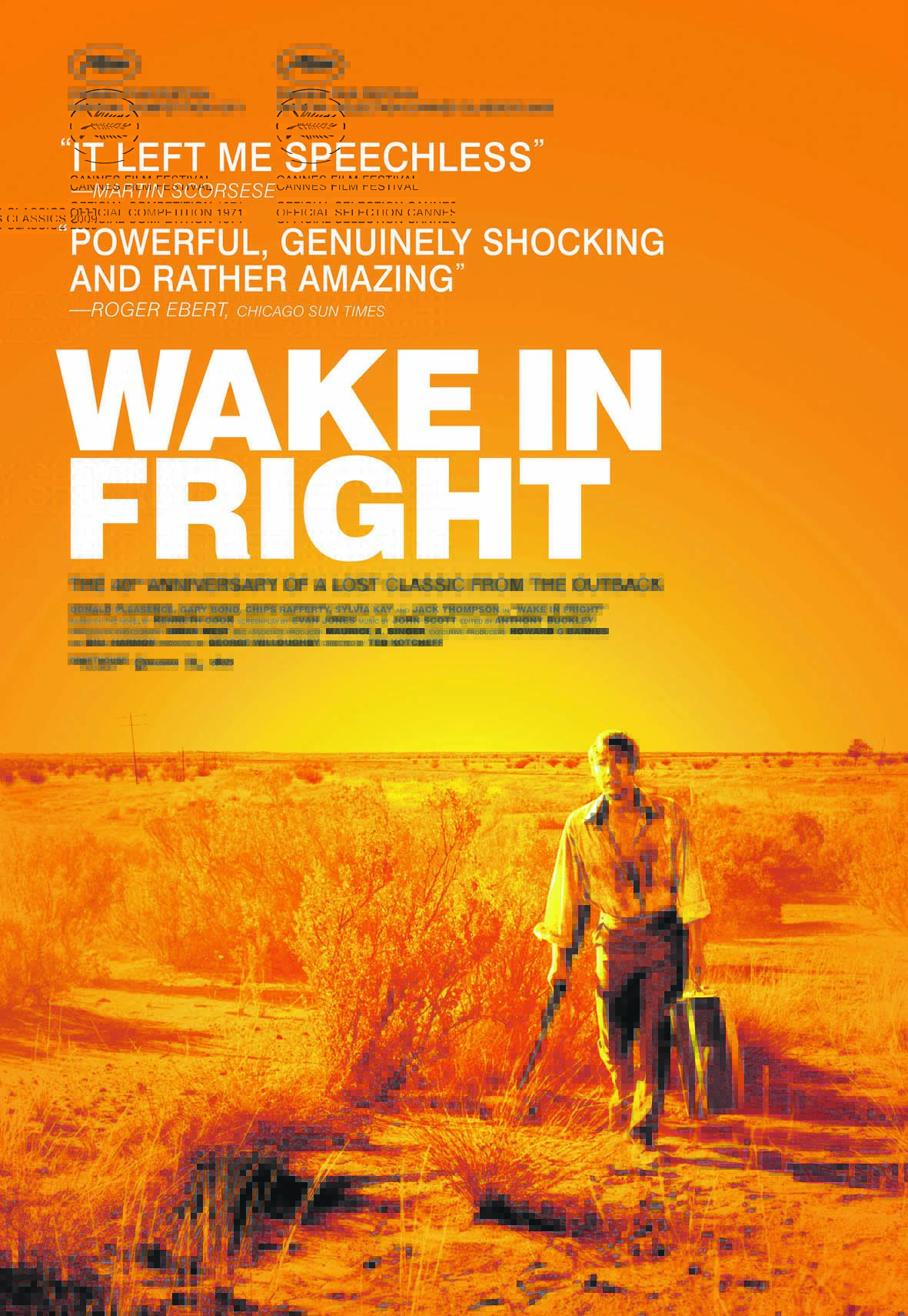 Des simples beuveries, John va être entraîné dans des bagarres et une séance de chasse nocturne aux kangourous particulièrement barbare (qui vaudra une séquence tétanisante). Préfigurant « Delivrance » de John Boorman et « The Wicker Man » de Robin Hardin par bien des aspects, « Wake in Fright » (traduit littéralement « Réveil dans la terreur ») nous entraîne avec son personnage principal dans un long cauchemar fiévreux. Ted Kotcheff décrit avec un réalisme désemparant la déliquescence progressive de cet instituteur et de ses valeurs. À la manière d’un Meursault dans le célèbre roman d’Albert Camus, John Grant semble dépossédé de ses moyens par un soleil assommant et une atmosphère étouffante. Pris dans un engrenage déshumanisant, il va peu à peu sombrer dans une folie qui lui fera perdre tout contact avec le monde civilisé et le fera plonger dans la terreur. Une terreur qui jaillit du quotidien ennuyeux des habitants de Yabba qui ne savent plus quoi faire pour s’occuper et repoussent chaque jour la frontière du soutenable.